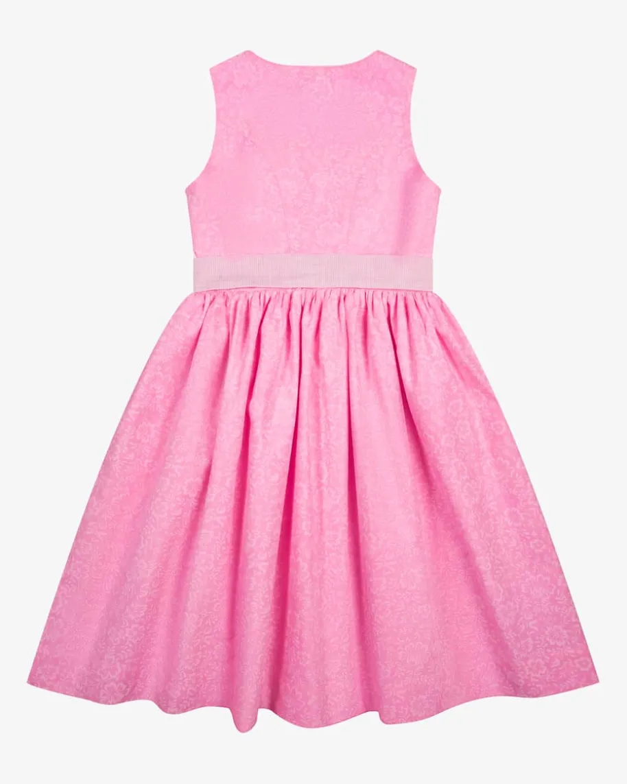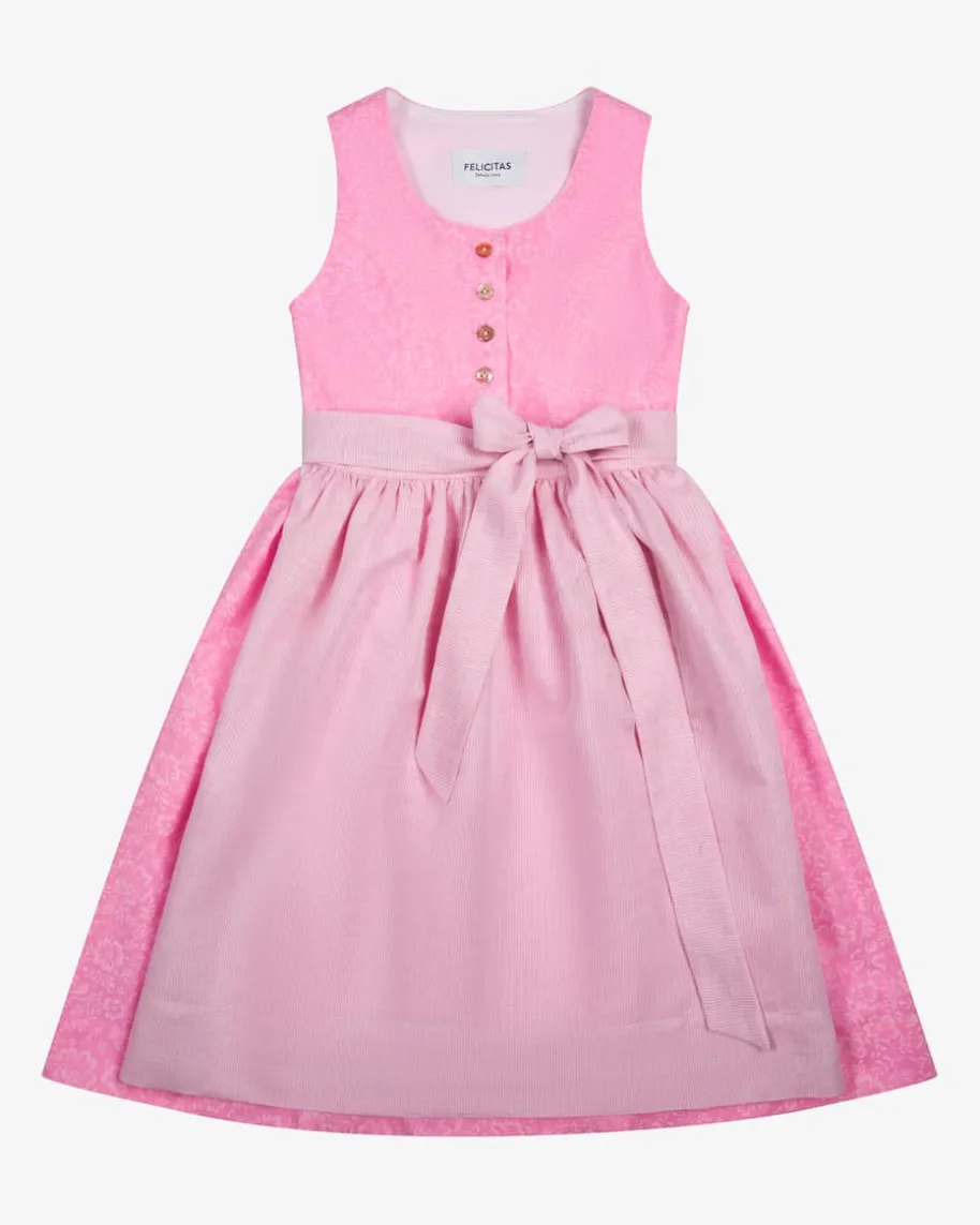 Magdalena Dirndl mit Schürze für Mädchen von Feli und Hans in Rosa. Gefertigtaus robuster Baumwolle besticht das Modell mit einer angenehmen Haptik, währendklassische Details einen traditionellen Favoriten für festliche Anlässeschaffen. Das florale Allover-Dessin und gestreifte Schürze runden dasGesamtbild gekonnt ab.