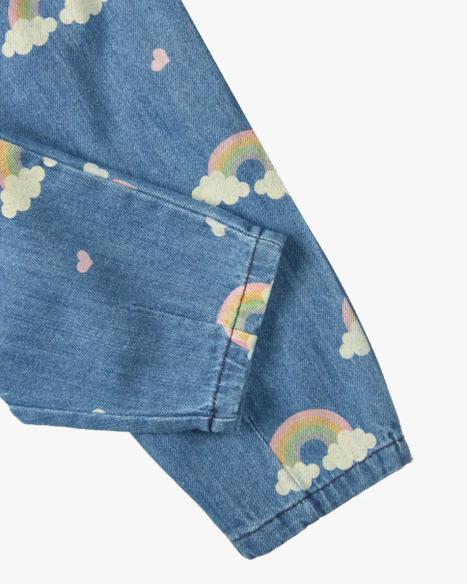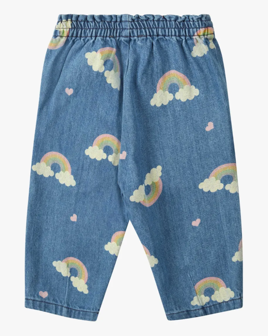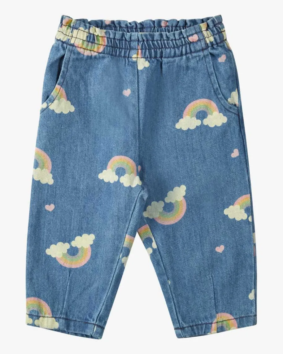 Magot Jeans für Babys von Konges Slojd in Blau und Bunt. Dänisches Design fürBabys & Kinder – nachhaltig, stylisch, durchdacht. Auch dieses Modell begeistertmit GOTS zertifiziertem Baumwoll-Denim, während der elastische Bund angenehmenTragekomfort verspricht. Das süße Allover-Muster mit Regenbogen-Motiv rundet denniedlichen Style harmonisch ab.