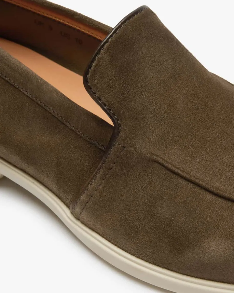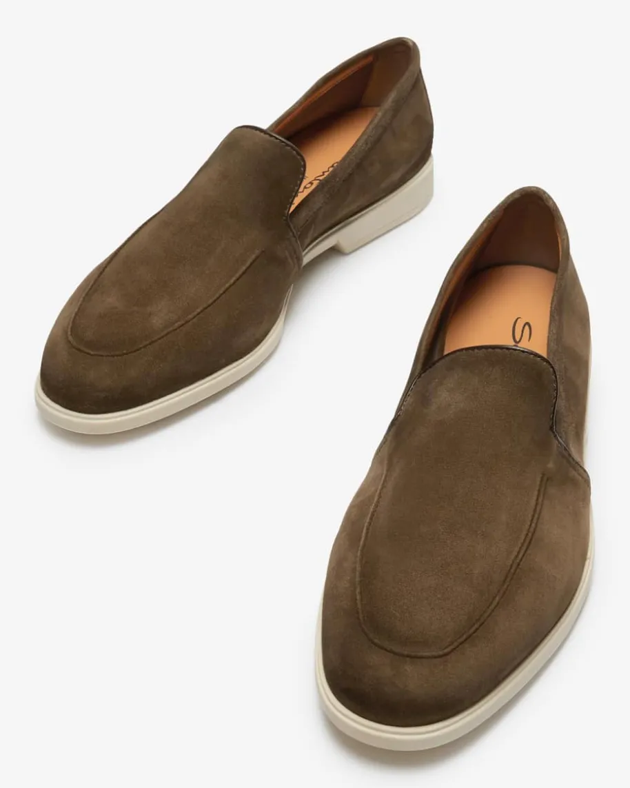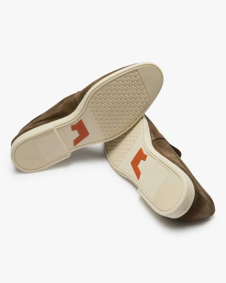 Malibu Loafer für Herren von Santoni in Braun. Das ultraleichte Modellbegeistert dank der hochwertigen, soften Veloursleder-Verarbeitung sowie derlegeren Gummisohle sowohl mit edler Optik als auch mit hohem Tragekomfort,während die feine Steppnaht den maskulinen Look gekonnt vollendet.