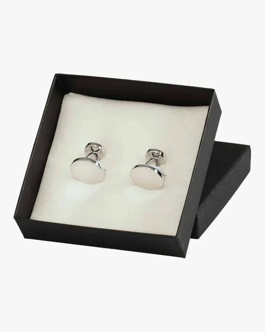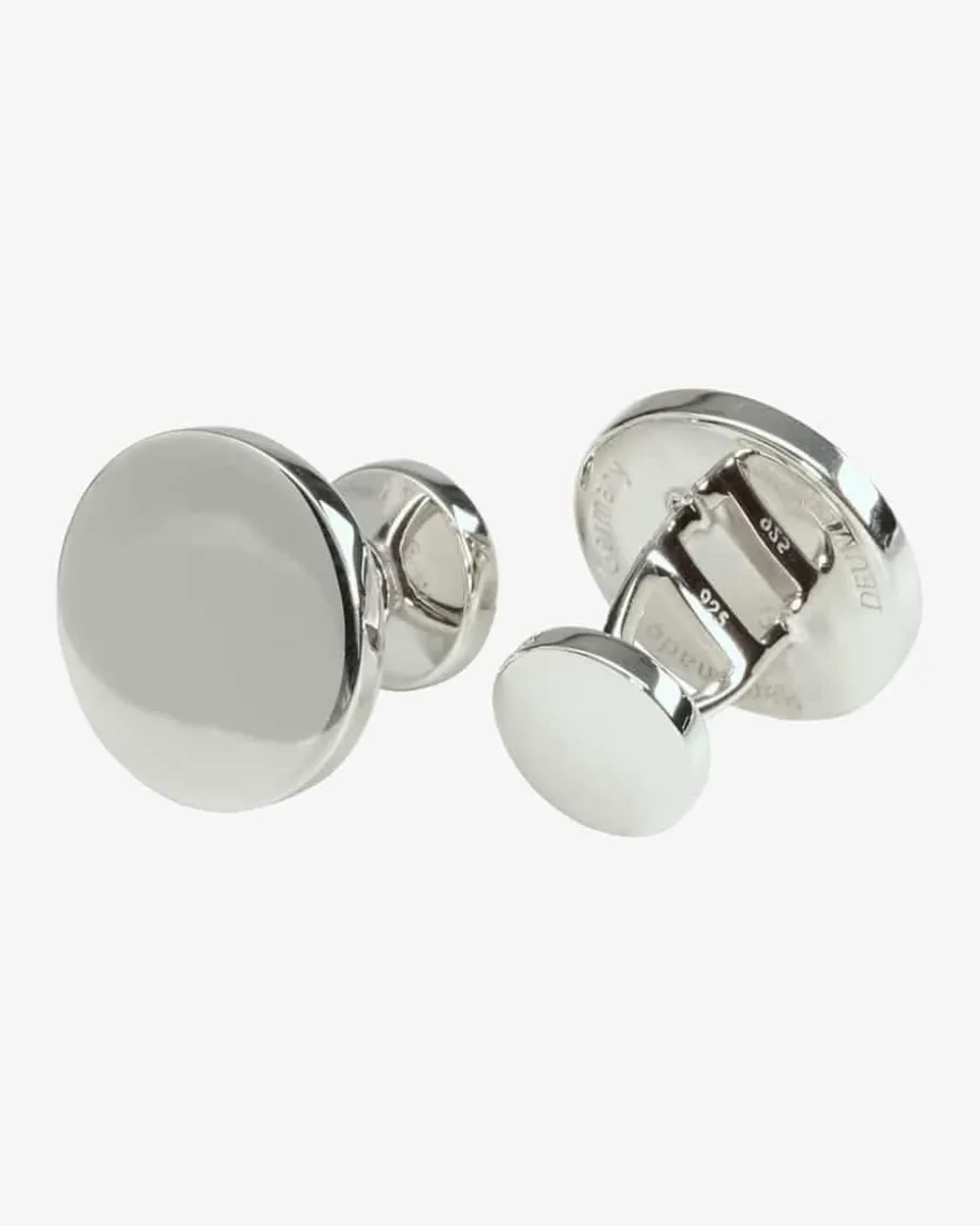Manschettenknöpfe für Herren von Deumer in Silber. Klassisch und elegant präsentieren sich die in Deutschland handgefertigten Manschettenknöpfe in runder Form. Das hochwertige Silber ist glänzend poliert, während sich eine Logoprägung auf dem Stift befindet. Für eine schöne Präsentation wird das Modell in einem stilvollen Geschenketui geliefert.