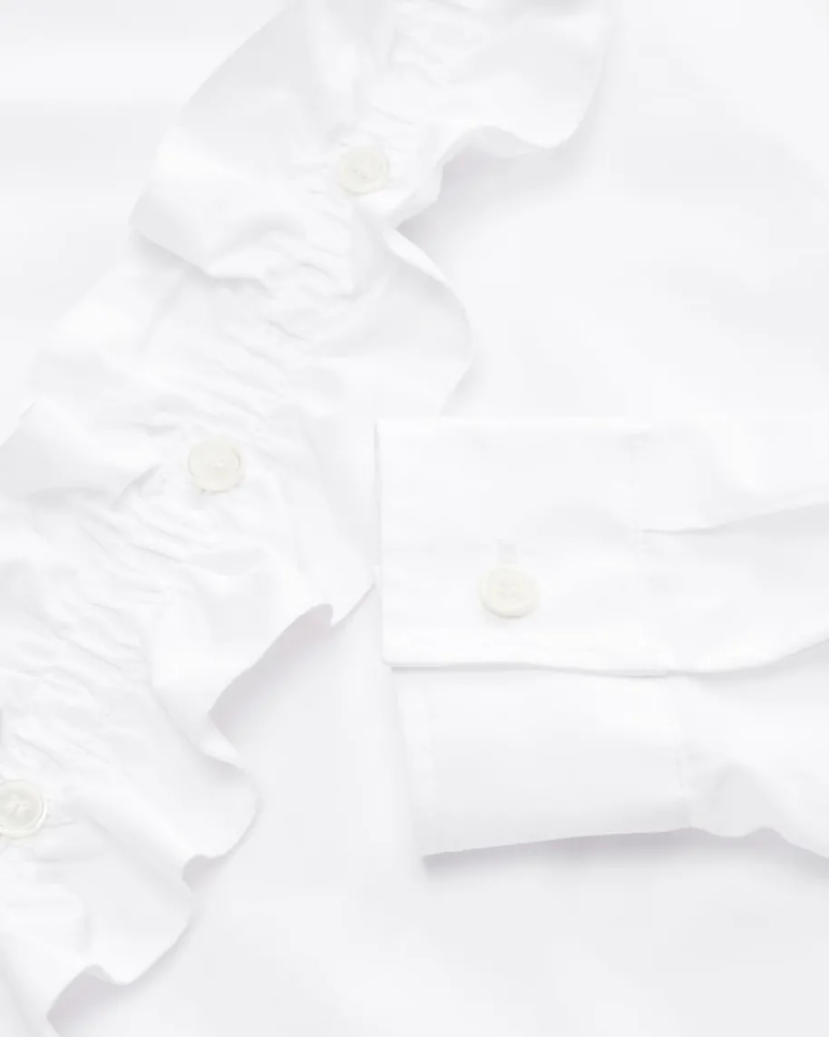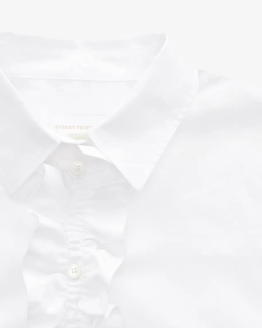 Mara Bluse für Damen von Robert Friedman in Weiß. Das Label steht fürhochwertige Blusen und Hemden – italienische Stoffe, deutsche Passform,internationale Klasse. Auch dieses Modell begeistert mit leichter Baumwolle, diefür angenehmen Tragekomfort sorgt. Die gerüschte Knopfleiste und klassischenDetails runden den romantisch angehauchten Look stilvoll ab.