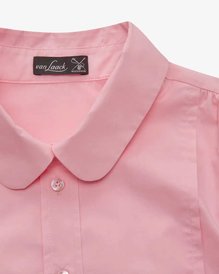 Mateja Bluse für Damen von van Laack in Rosa. Das Modell präsentiert sich inleichter Baumwoll-Qualität, die sowohl haptisch als auch optisch überzeugt,während Bübchenkragen, Muschelsaum und die modische Passform den Look stilvollabrunden.