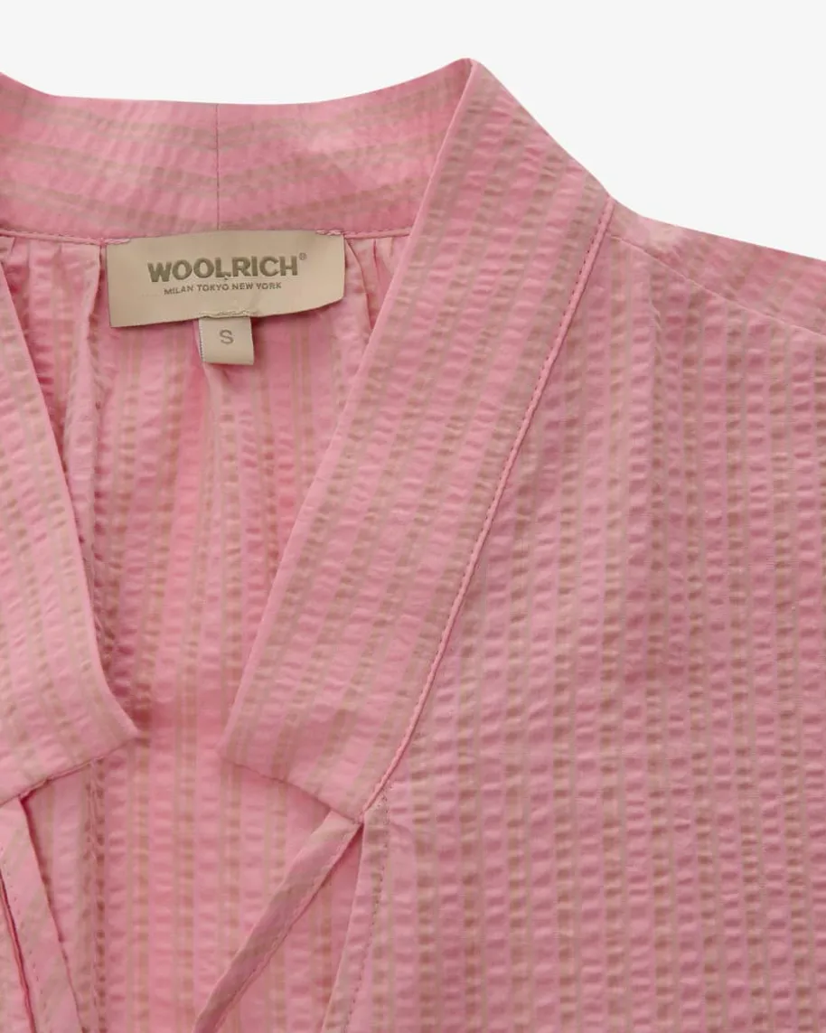Maxikleid für Damen von Woolrich in Altrosa und Taupe. Die weiche Baumwoll-Verarbeitung punktet mit einer weichen Haptik und leichtem Tragegefühl, währenddas Streifen-Dessin sowie die weite Passform ein modisches Gesamtbild kreieren.