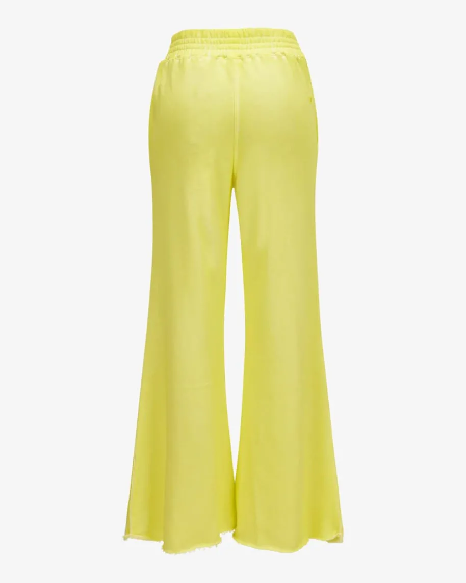 Mayari Sweathose für Damen von Love Joy Victory in Gelb. Das Modell ausangenehmer Bio-Baumwolle präsentiert sich in legerer Sweat-Aufmachung, währenddas ausgestellte Bein dem sonst sportivem Look ein modernes Update verleiht.Zugleich rundet die Batik-Aufmachung das Gesamtbild modisch ab.
