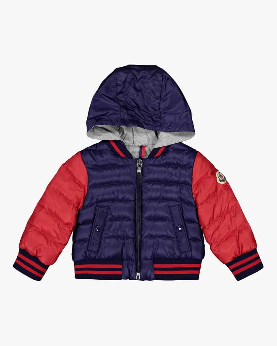 Mezan Baby-Jacke von Moncler in Marine und Rot. Das gesteppte Modell begeistertdurch das kontrastierende Farbenspiel, während die hochwertige Daunen-Feder-Füllung wärmenden Tragekomfort garantiert.