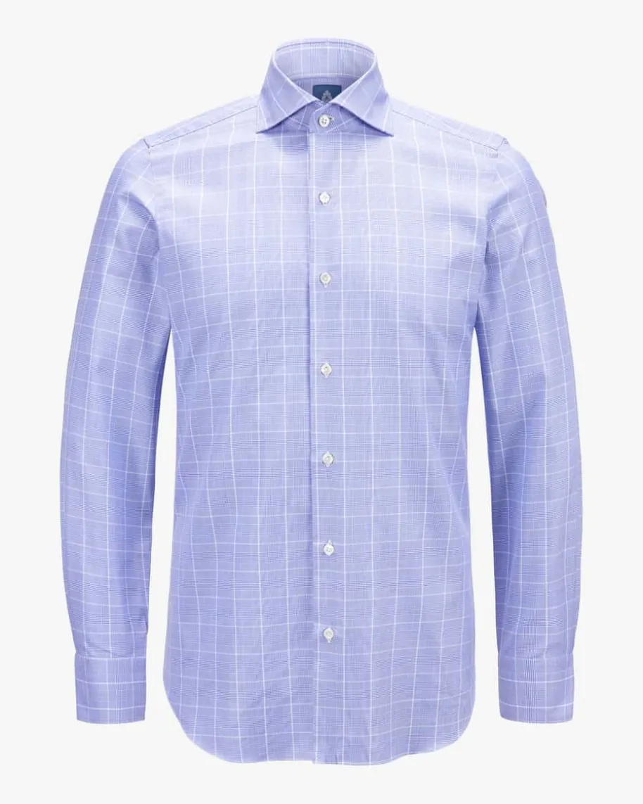 Milano Eduardo Businesshemd Slim für Herren von Finamore 1925 in Hellblau undWeiß. Handgefertigt in Italien – Mit tailliertem Schnitt und klassischen Detailsüberzeugt das Hemd als stilvoller Partner für gehobene Business-Looks, währenddas feine Karo-Muster eine besondere Note verleiht.