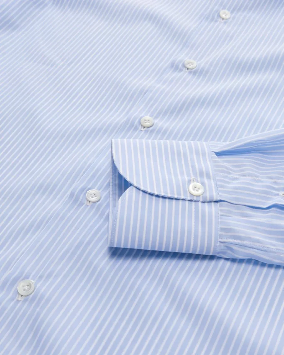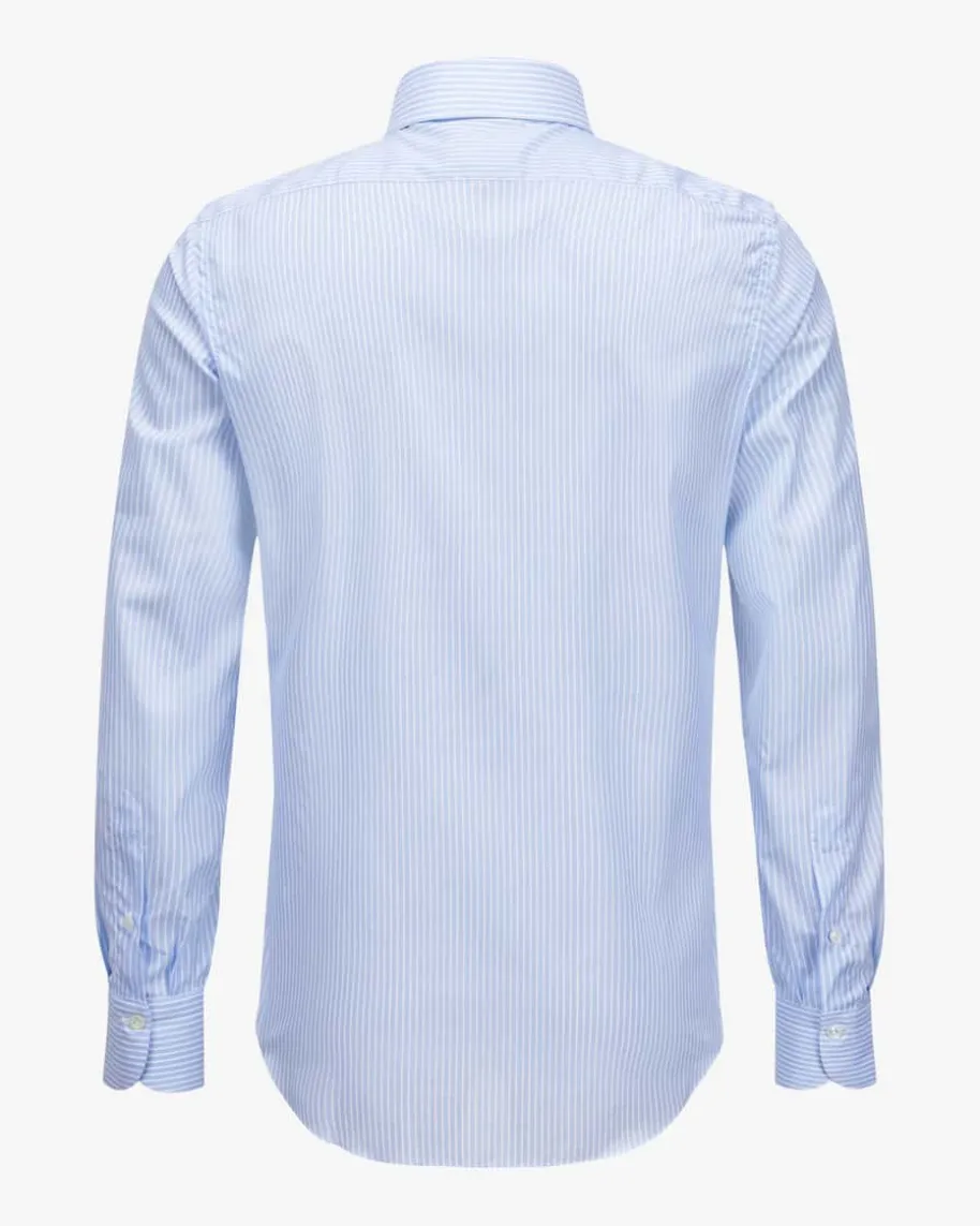 Milano Eduardo Businesshemd Slim für Herren von Finamore 1925 in Hellblau undWeiß. Das Modell aus angenehm leichter Baumwolle besticht dank des filigranenStreifen-Dessins in modischer Aufmachung, während klassische Details denperfekten Begleiter für Business-Looks schaffen.