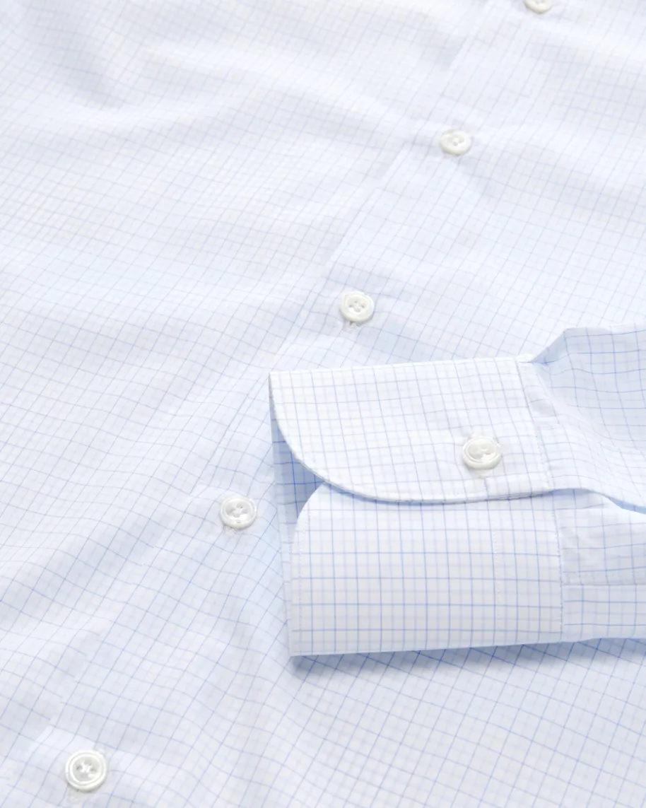 Milano Eduardo Businesshemd Slim für Herren von Finamore 1925 in Weiß und Blau.Handgefertigt in Italien – Mit tailliertem Schnitt und klassischen Detailsüberzeugt das Hemd als stilvoller Partner für gehobene Business-Looks, währenddas feine Karo-Muster modische Akzente setzt.