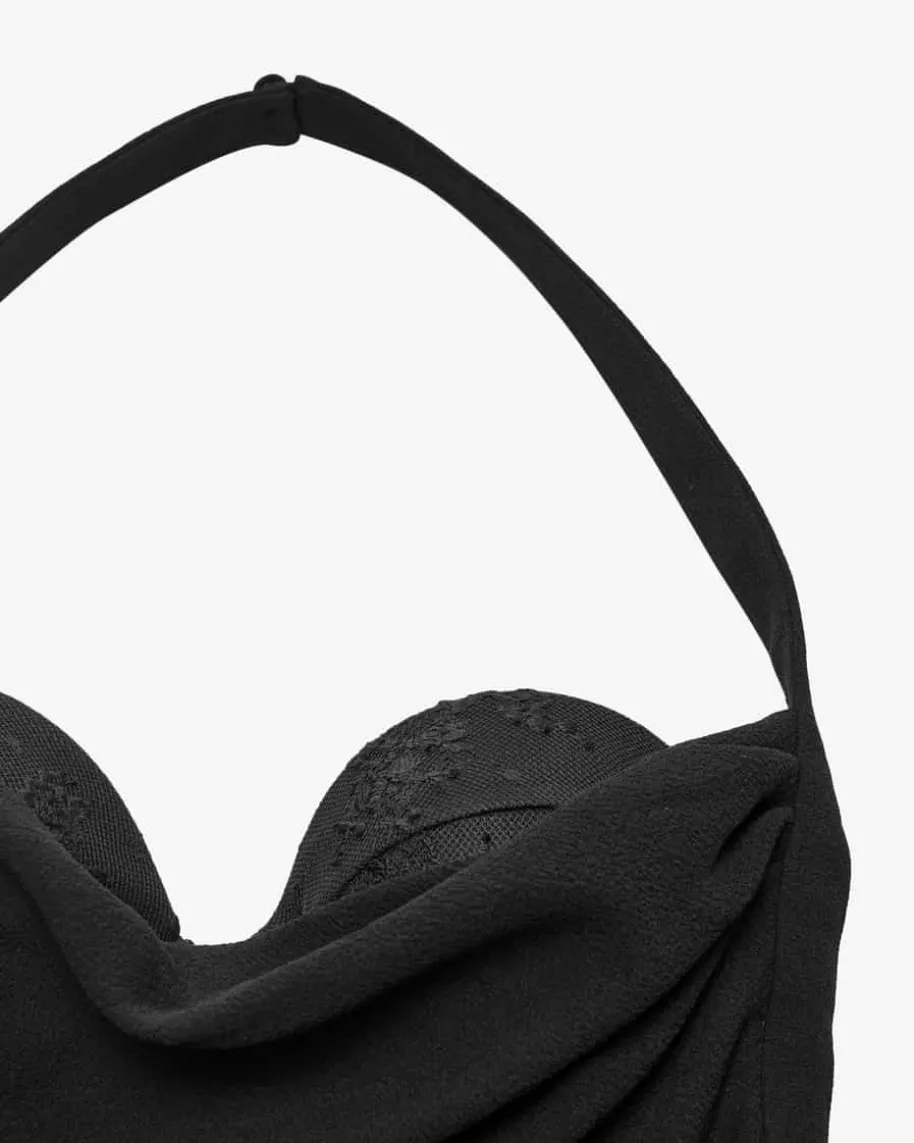 - Neckholder-Ausschnitt mit Drapierung