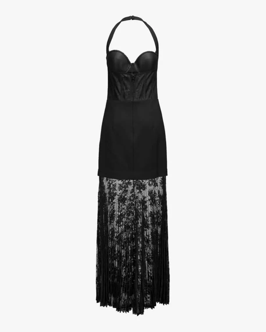 Milena Kleid für Damen von Rebecca Vallance in Schwarz. Das schmale Modellbegeistert mit extravagantem Spitzen-Plissée-Rock und zaubert dank raffiniertemNeckholder-Ausschnitt eine feminine Silhouette und zeigt sich als modischerFavorit – Perfekt für besondere Anlässe, vereint es Stil und Eleganz in einemeinzigartigen Design.