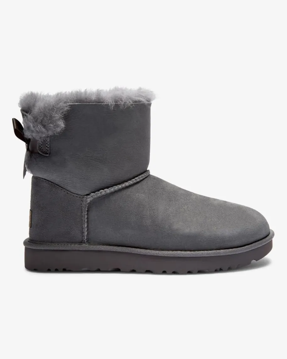 Mini Bailey Bow Boots für Damen von UGG in Blaugrau. Leicht, weich und warm -DieStiefel des Kult-Labels begeistern durch das wasser- sowie schmutzabweisendeLammleder. Dank charakteristischem Lammfell-Futter wird für die nötige Wärmegesorgt, während die Treadlite-Laufsohle mit rutschfestem Profil sicheren Haltverspricht.