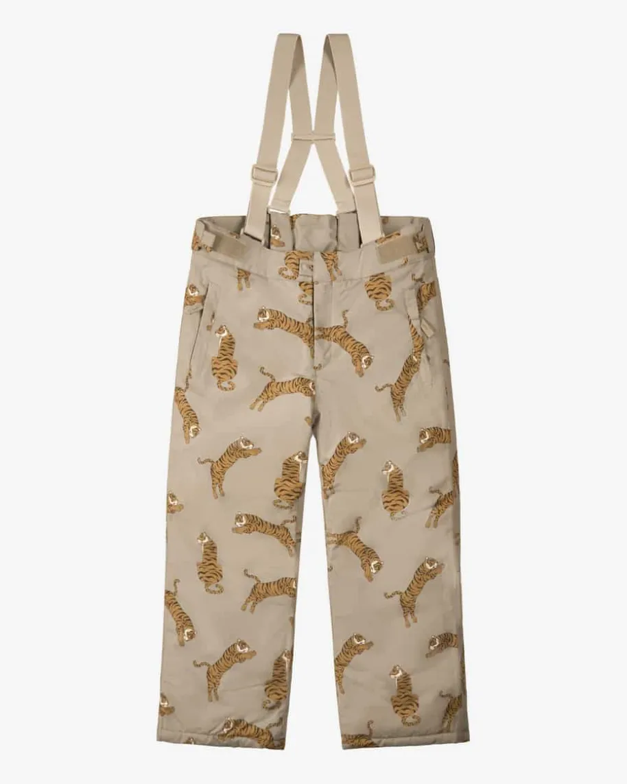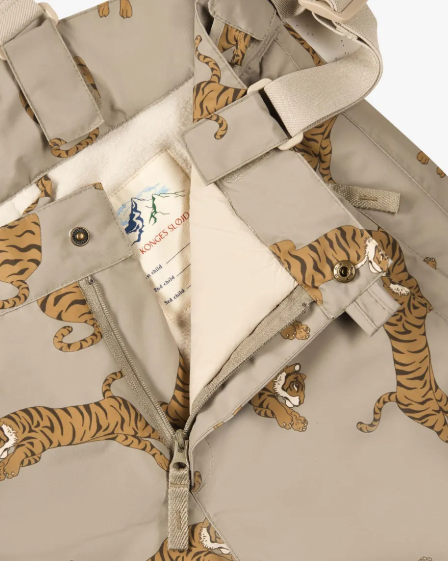 Mismou Skihose für Jungen von Konges Slojd in Oliv, Braun und Anthrazit. DasModell punktet dank wetterfester Eigenschaften sowie wärmender Fleece-Fütterungals Winter-Favorit, während funktionale Details den Look gekonnt abrunden.Zugleich verleiht der Allover-Tiger-Print das gewisse Etwas.