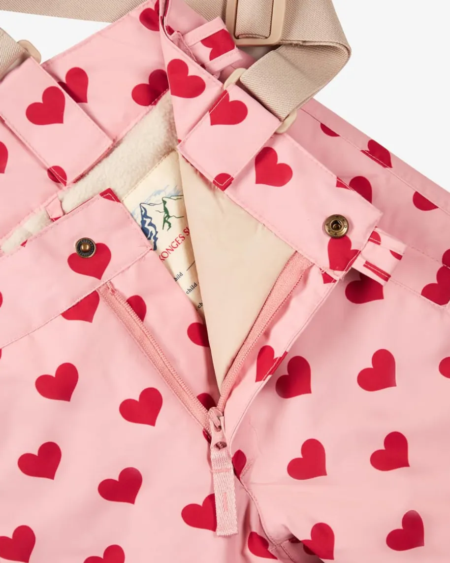 Mismou Skihose für Babys von Konges Slojd in Rosa und Rot. Im niedlichenAllover-Herzen-Design besticht das Modell in süßer Aufmachung, während diegefütterte Qualität sowie wetterfeste Eigenschaften den perfekten Begleiter fürkalte Tage und Winteraktivitäten schafft.