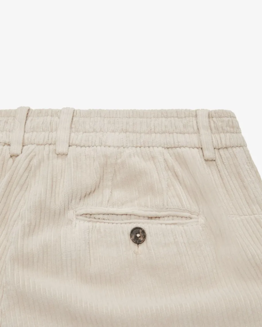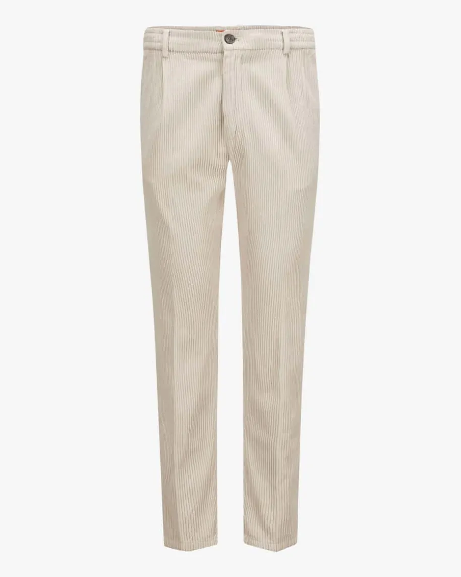 Mitte Cord-Joggpants für Herren von Cruna in Sand. Das verkürzte Modellbesticht durch die weiche Cord-Qualität sowie dem elastischen Bund mitinnenliegendem Tunnelzug als legerer Begleiter mit modernem Charakter, welcherdurch die Bundfalten einen stilvollen Touch erhält.
