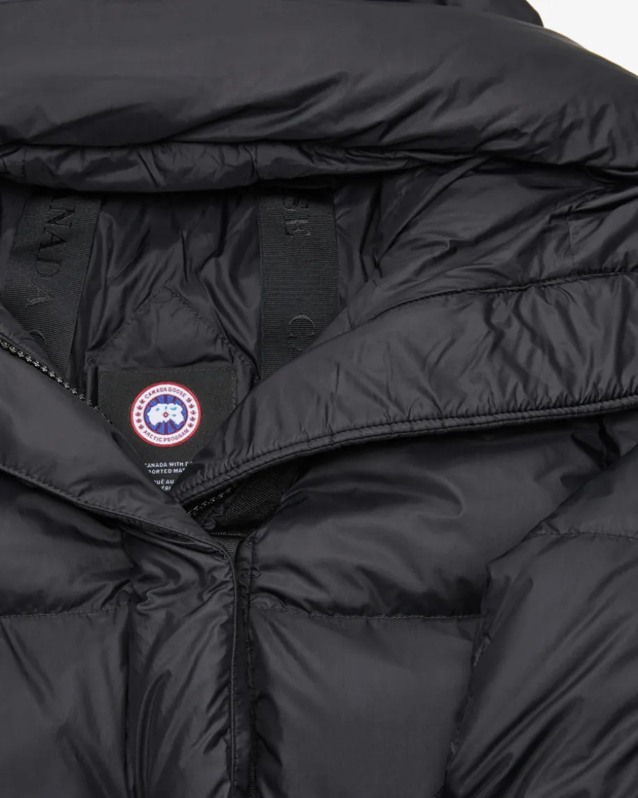 Montgomery Daunenjacke für Damen von Canada Goose in Schwarz. ZweckmäßigesDesign, orientiert an den rauen Bedingungen der Arktis, ist der Grundstein füralle Kollektionen von Canada Goose. Auch dieses Modell in sportiver Stepp-Optikbegeistert dank hochwertiger und optimal isolierenden Daunen-Feder-Füllung sowiedem hochgeschlossenen Kragen als wärmender Outdoor-Begleiter, welcher durch denTaillenzug individuelle Tragemöglichkeiten verspricht.