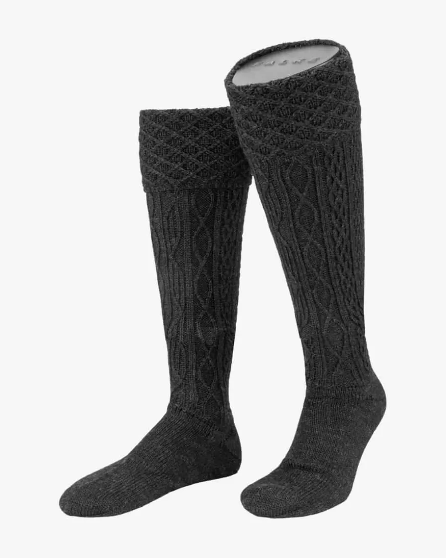 Mühlbach Trachten-Kniestrümpfe für Herren von Gottseidank in Anthrazit.Perfekte Begleiter zur Lederhose – Die knielangen Strümpfe aus feiner Schurwollebegeistern durch das stilvolle Strickmuster und die zeitlose Aufmachung. EinUmschlag in traditionellem Rautenmuster rundet das Modell gekonnt ab.