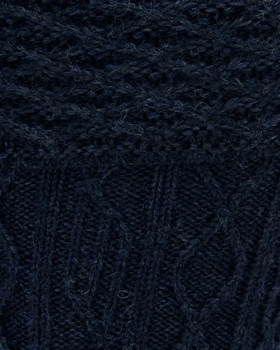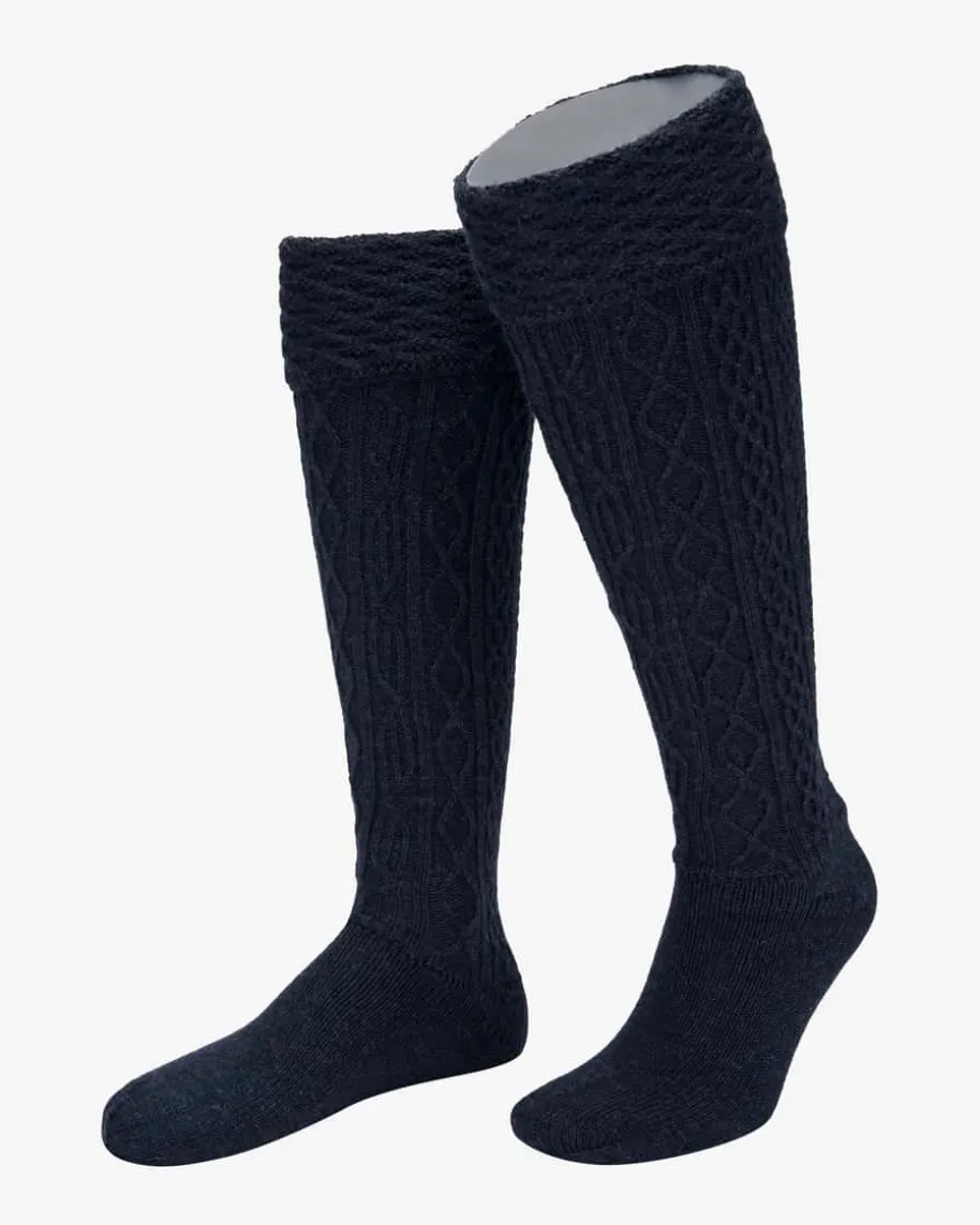 Mühlbach Trachten-Kniestrümpfe für Herren von Gottseidank in Navy.Perfekte Begleiter zur Lederhose – Die knielangen Strümpfe aus feiner Schurwollebegeistern durch das stilvolle Strickmuster und die zeitlose Aufmachung. EinUmschlag in traditionellem Rautenmuster rundet das Modell gekonnt ab.