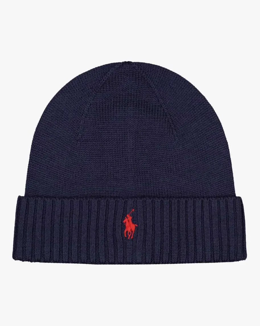 Mütze für Herren von Polo Ralph Lauren in Navy. Das Modell besticht dank derRippstrick- Qualität in legerer Aufmachung, während die charakteristische Logo-Stickerei dem Look den letzten Schliff verleiht.