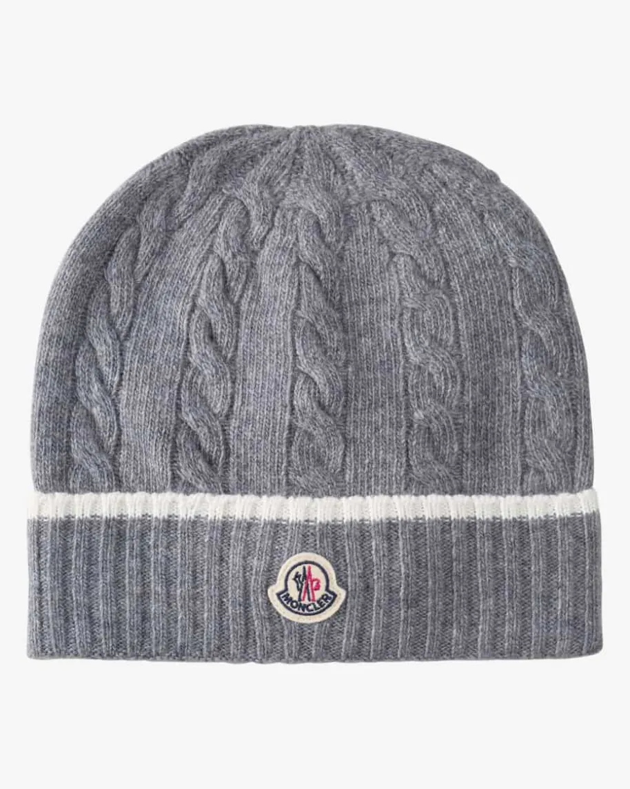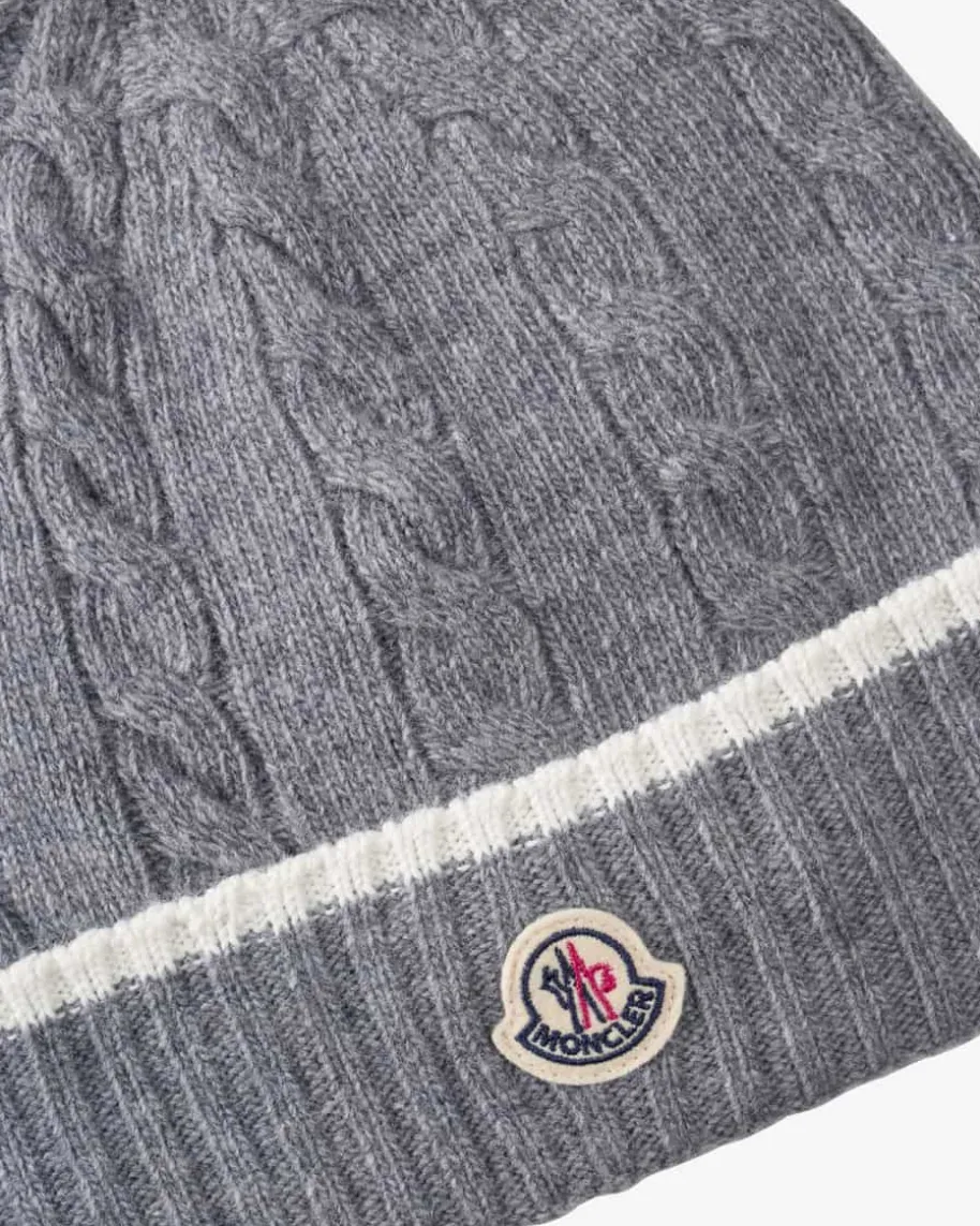 Mütze für Kinder von Moncler Enfant in Grau. Das Modell punktet dank derSchurwoll-Verarbeitung mit einem besonders weichen Griff, während dasZopfstrick-Muster ein niedliches Gesamtbild kreiert.