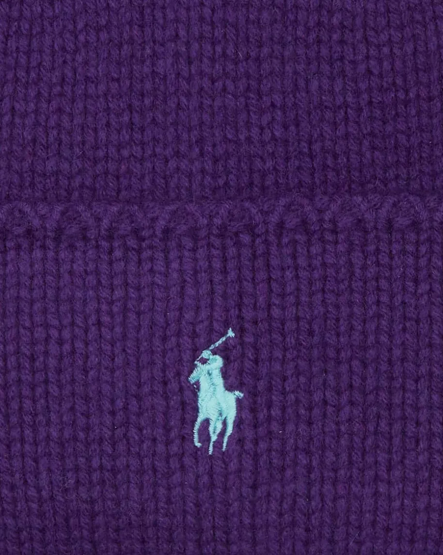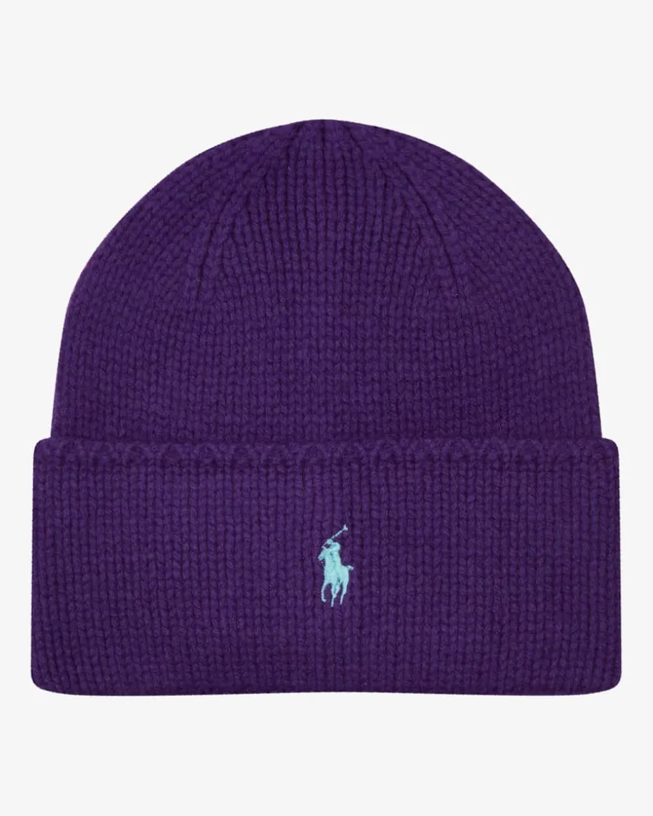 Mütze für Damen von Polo Ralph Lauren in Violett. Das Modell aus hochwertigerWoll-Qualität begeistert mit weichem Griff, während das zeitlose Rippstrick-Design mit charakteristischen Polo-Stickerei einen warmen Begleiter für kühleTage kreiert.