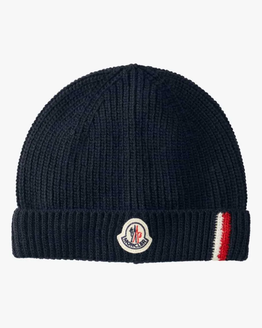 Mütze für Jungen von Moncler Enfant in Navy. Das Modell punktet dank derSchurwoll-Verarbeitung mit einem weichen Griff, während das Rippstrick-Musterein niedliches Gesamtbild kreiert. Zugleich setzen die Streifen-Details sowieLogo-Applikation charakteristische Akzente.