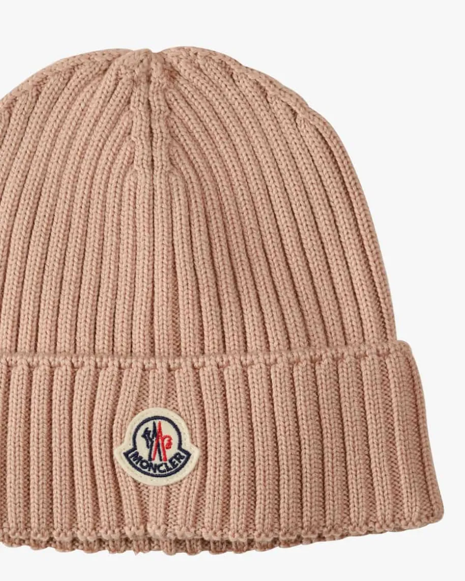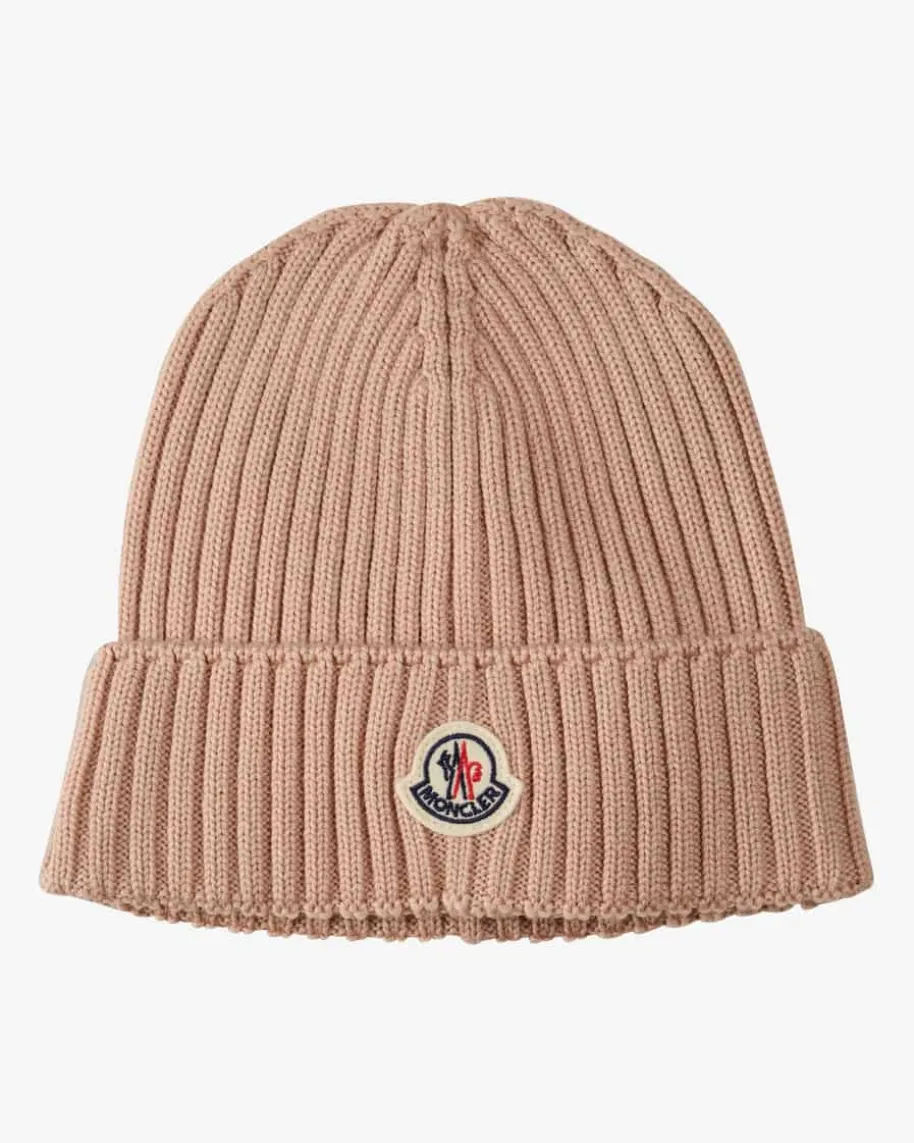 Mütze für Kinder von Moncler Enfant in Rosé. Das Modell aus angenehmerSchurwoll-Qualität avanciert durch sein zeitloses Design in Rippstrick-Aufmachung zum perfekten Begleiter. Die labeltypische Logo-Applikation setztzudem modische Akzente.
