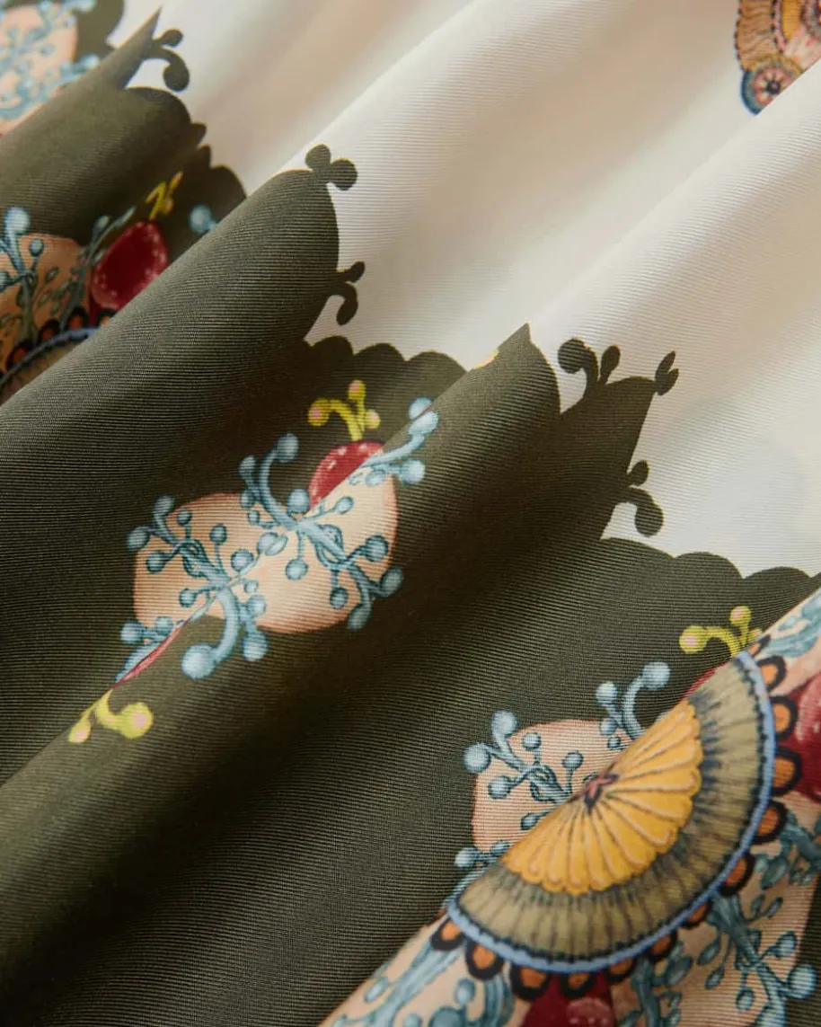Muumuu Seiden-Kaftankleid für Damen von La DoubleJ in Oliv, Creme undTerrakotta. Das Mailänder Label ist bekannt für farbenfrohe Vintage-Prints,spirituelle Energie und italienischen Lebensstil. Dieses Modell präsentiert sichmit weiter Passform im klassischen Kaftan-Stil, während der kreative Print einmodisches Gesamtbild kreiert. Zudem offeriert das zusätzliche TaillenbandVarianz und lässt sich somit in einen femininen Begleiter verwandeln.