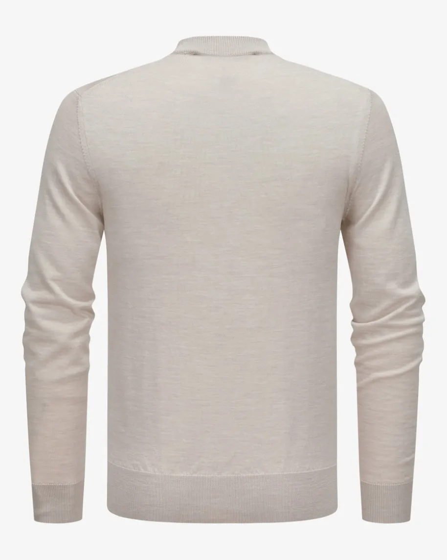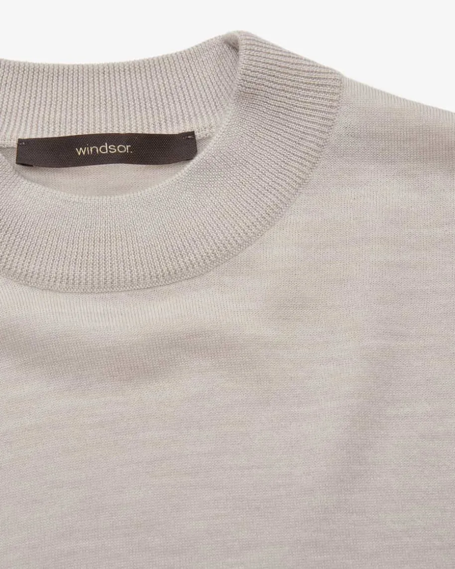 Nando Pullover für Herren von Windsor in Stein. Das semi-transparente Modellbesticht dank weichem Woll-Seiden-Cashmere-Mix mit besonders angenehmenTragemomenten, während klassische Details sowie der raffinierte Ausschnitt einenCasual-Liebling für stilvolle Looks kreieren.