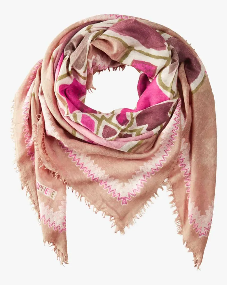 Nball Tuch für Damen von Hemisphere in Beige, Rosa und Creme. Das Modell aushochwertigem Cashmere-Mix punktet mit einem weichen Griff, während das floraleAllover-Dessin ein stilvolles Accessoire kreiert.