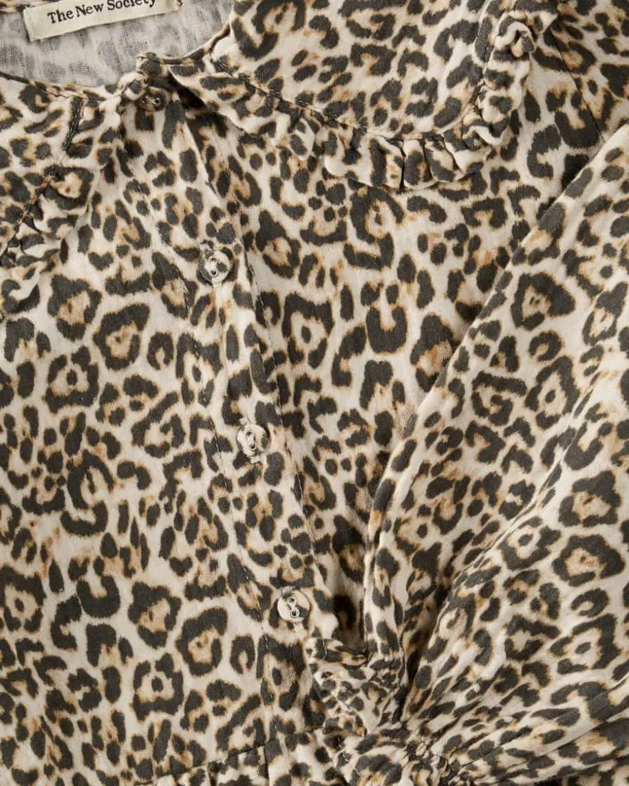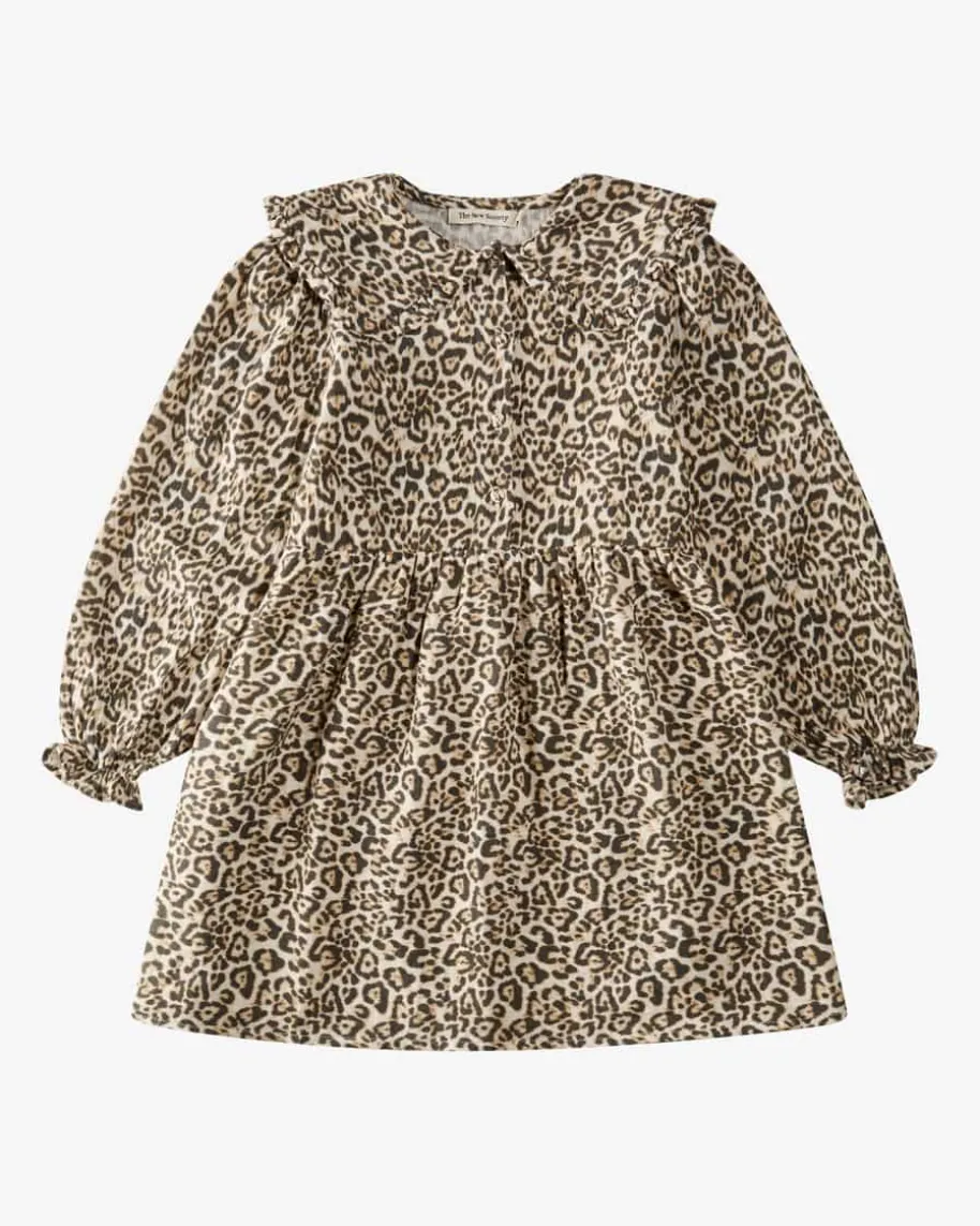 Nelia Musselinkleid für Mädchen von The New Society in Beige, Schwarz undCognac. Das Modell in angenehmer Haptik überzeugt mit hochwertiger Baumwoll-Qualität, während die Musselin Aufmachung für ein angenehmes Tragegefühl sorgt,rundet das Leoparden-Dessin den Look gekonnt ab.