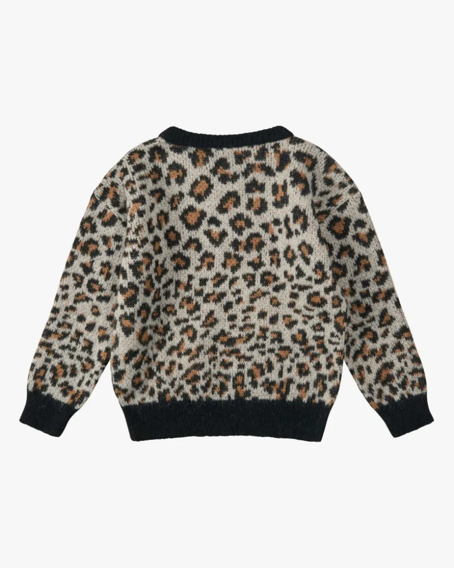Nella Pullover für Mädchen von The New Society in Schwarz, Off-White und Beige.Das Modell überzeugt mit weichem Woll-Mix, der angenehmen Tragekomfortgarantiert. Das modische Leo-Muster rundet den Look harmonisch ab.