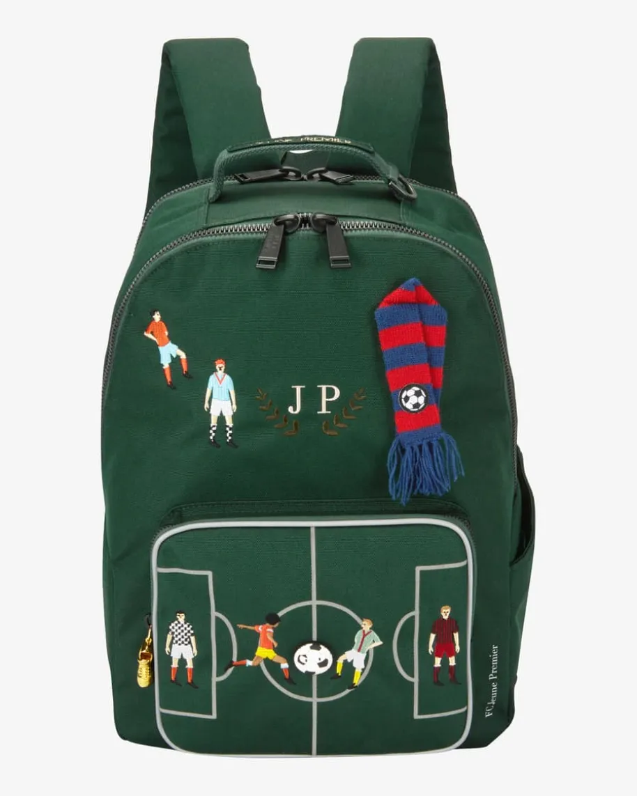 New Bobbie Rucksack für Kinder von Jeune Premier in Dunkelgrün und Bunt. Dasverspielte Modell überzeugt mit seinen lässigen Fußball-Applikationen undsportiven Anhängern, während der Brustgurt einen optimalen Tragekomfortgewährleistet.
