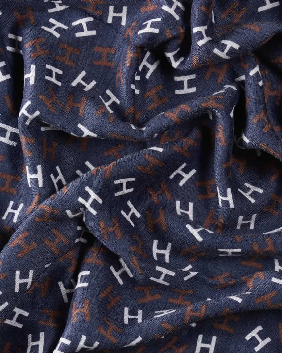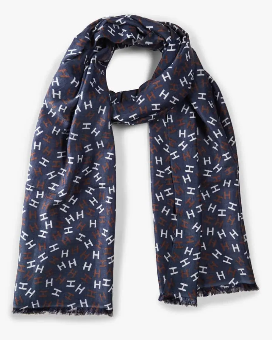 Nies Schal für Damen von Hemisphere in Navy, Braun und Weiß. Das stilvolleModell begeistert durch die Verwendung hochwertiger Cashmere-Seiden-Qualität mitbesonders angenehmem Griff. Ein charakteristisches Logo-Dessin rundet dasGesamtbild ab.