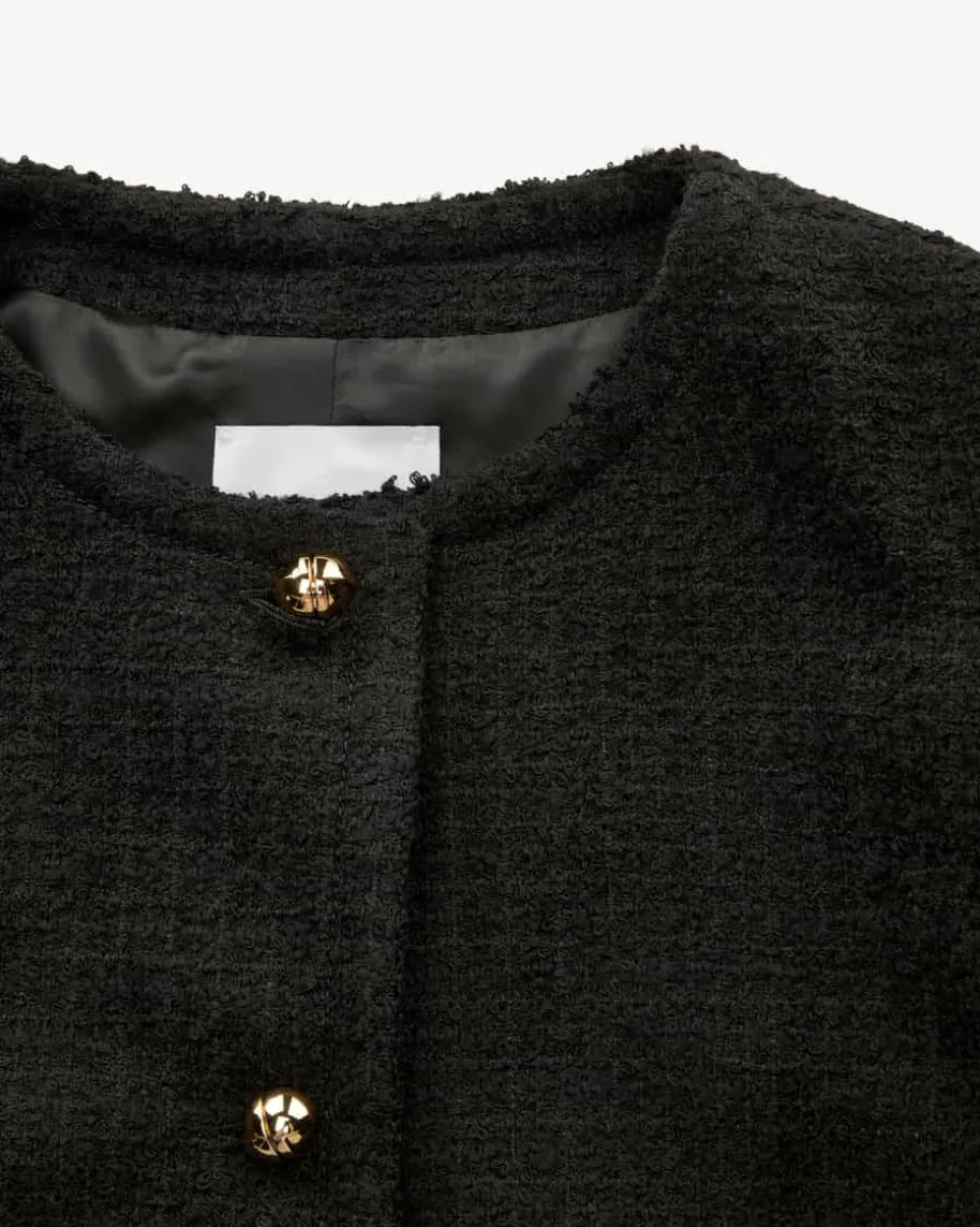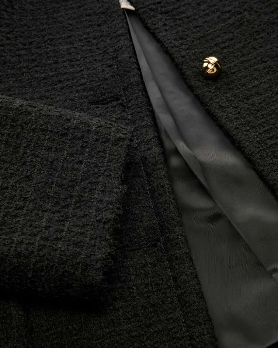 No Collar Boxy Blazer für Damen von Patou in Schwarz. Das Modell in Bouclé-Aufmachung überzeugt in hochwertiger Schurwoll-Qualität, während die klassischenDetails in Kombination mit den markanten Knöpfen und der Logo-Applikation einenmodischen Look kreieren.