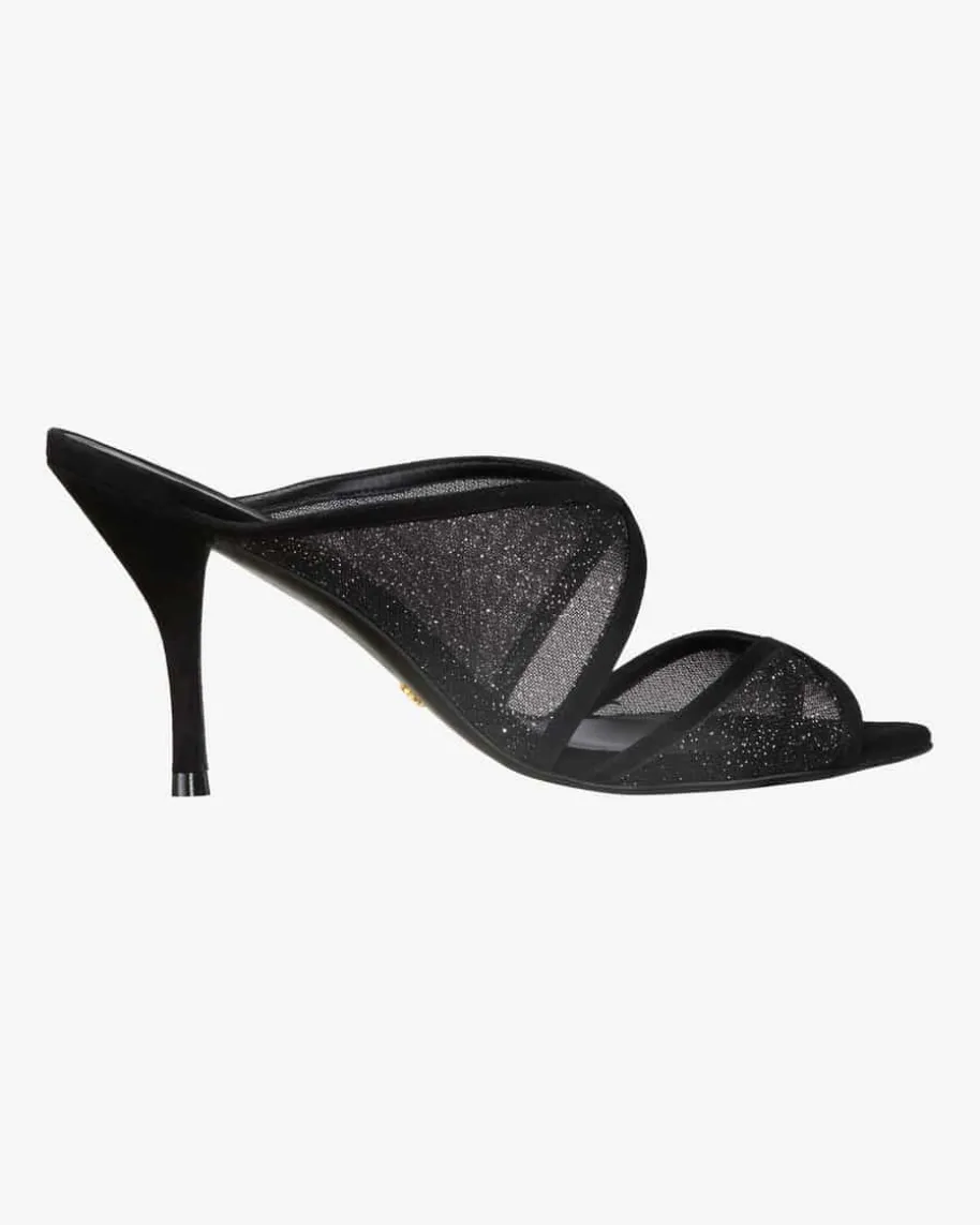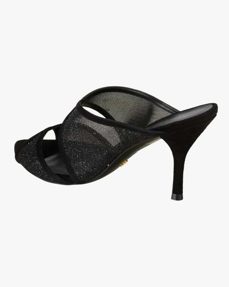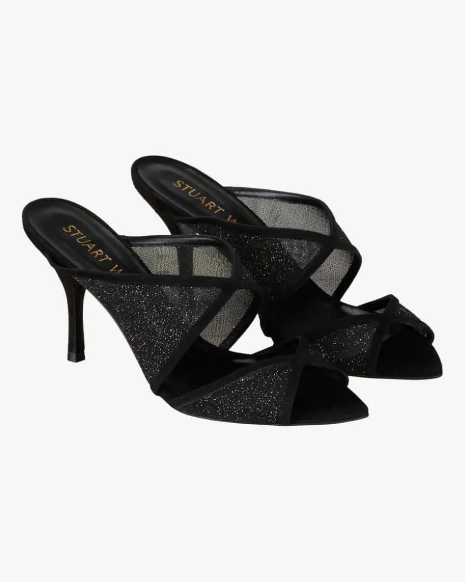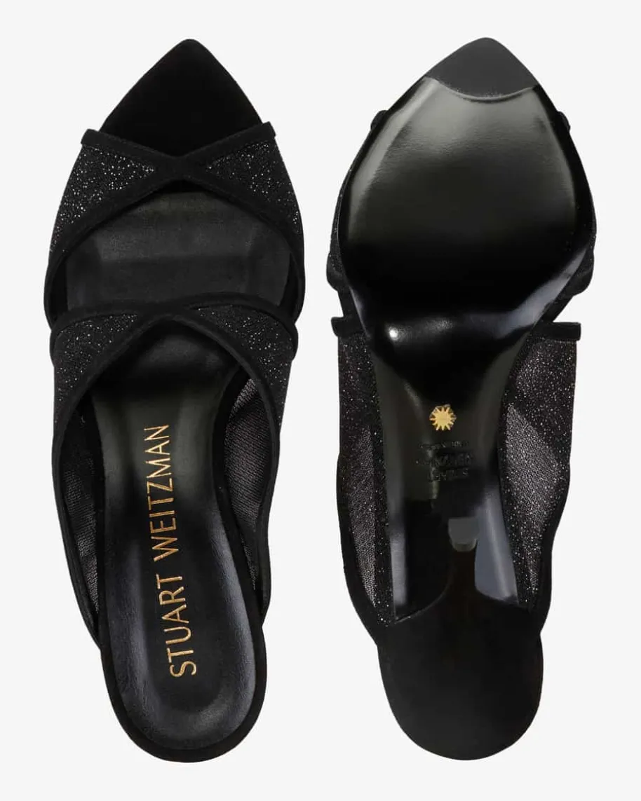 Noche 85 Mules für Damen von Stuart Weitzman in Schwarz. Der angesagteSchuhdesigner begeistert mit seinen Kreationen nicht nur Weltstars, sondern alleFrauen rund um den Globus. Das Modell avanciert dank der changierendenAufmachung sowie der raffinierten Riemen zum femininen Hingucker.