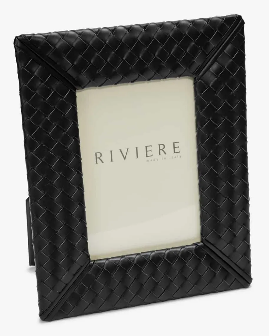 Nora Small Bilderrahmen von Giobagnara in Schwarz. Riviere, Teil der Giobagnara-Gruppe, produziert anspruchsvolle Wohnaccessoires, die von den bestenKunsthandwerkern handgefertigt werden, deren Können seit Generationenweitergegeben wird. Dieser Bilderrahmen überzeugt mit zeitlosem Design underhält durch die handgewebte Aufmachung aus edlem Leder einen einzigartigenCharakter.
