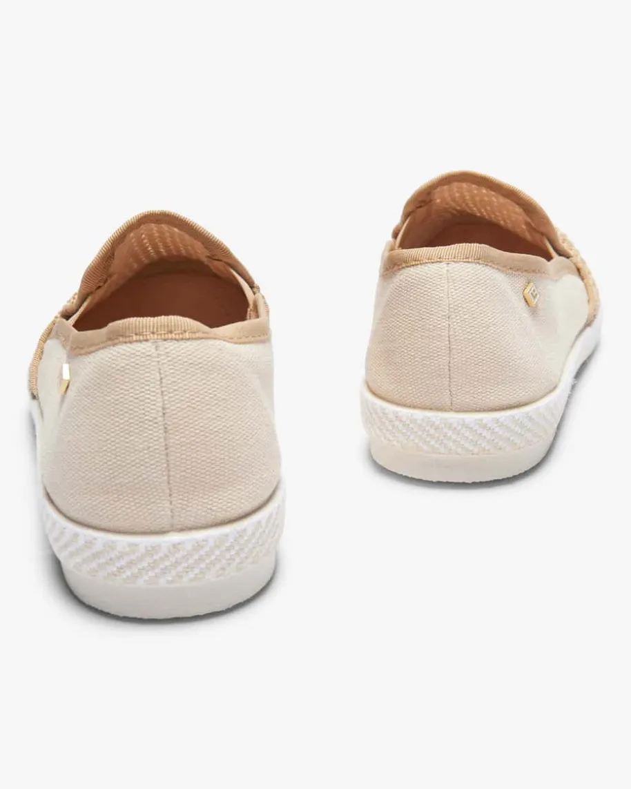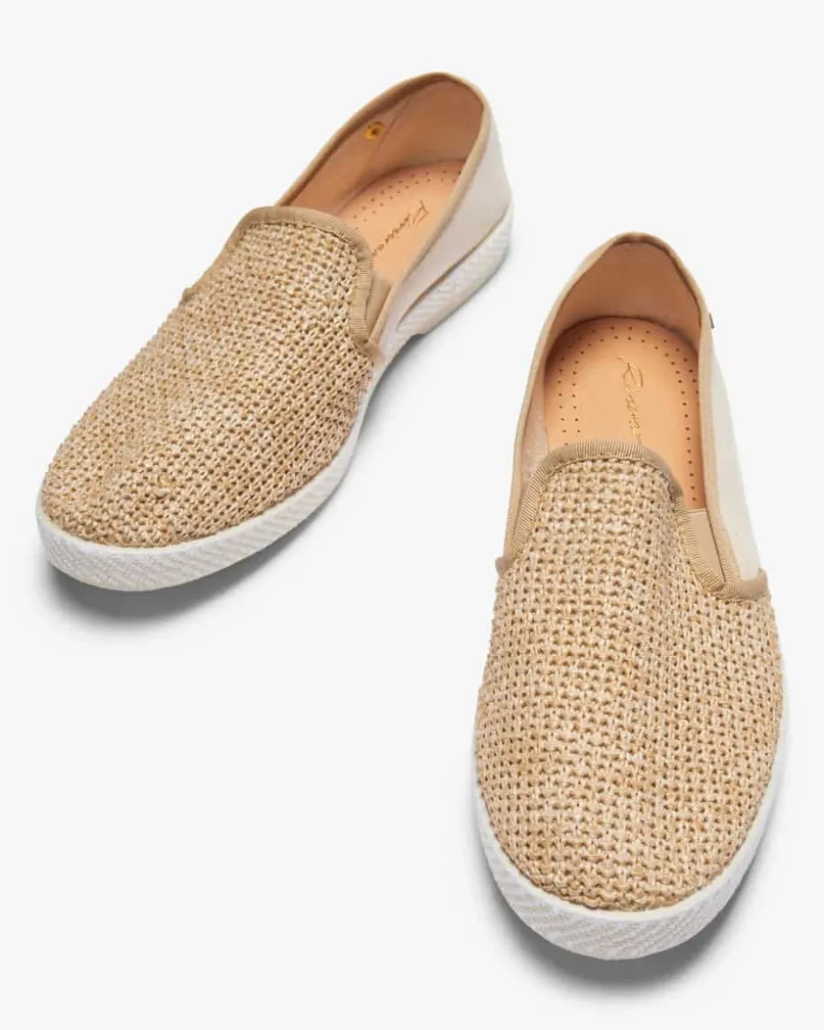 Nudude Match Slipper für Herren von Rivieras in Ecru und Natur. Das Modellavanciert dank der raffinierten Kombination aus Bast und fein strukturiertemTextil zum besonderen Sommer-Begleiter, welcher durch das Frottee-Innenfutterzugleich mit hohem Tragekomfort punktet.