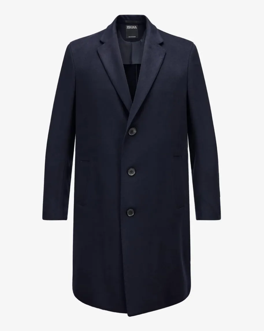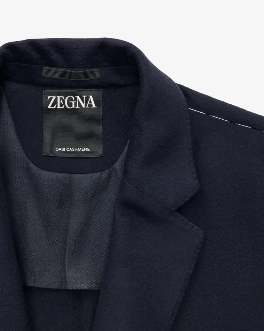 Oasi Cashmere-Mantel für Herren von Zegna in Navy. Das Modell aus hochwertigemCashmere besticht dank der weichen Material-Qualität mit angenehmer Haptik,während klassische Details einen vielseitigen Favoriten mit maskulinem Charmekreieren.