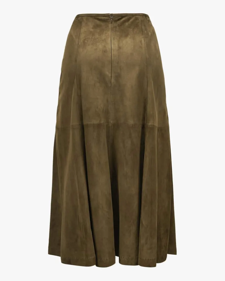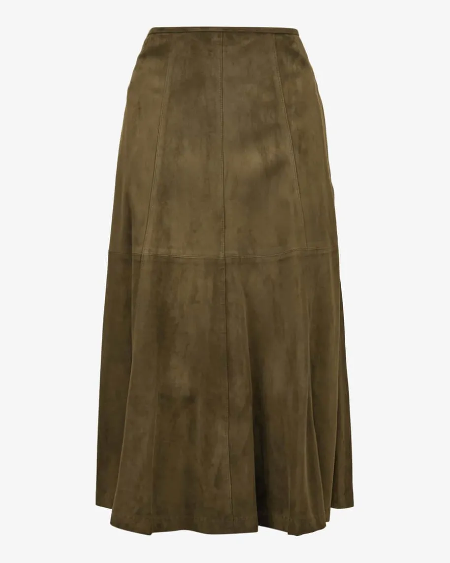 Odila Trachten-Lederrock für Damen von Habsburg in Braun. Das Modell punktet mithochwertigem Lammleder in weicher Velours-Verarbeitung. Die ausgestelltePassform mit dezenten Teilungsnähten rundet den Trachten-Look gekonnt ab.