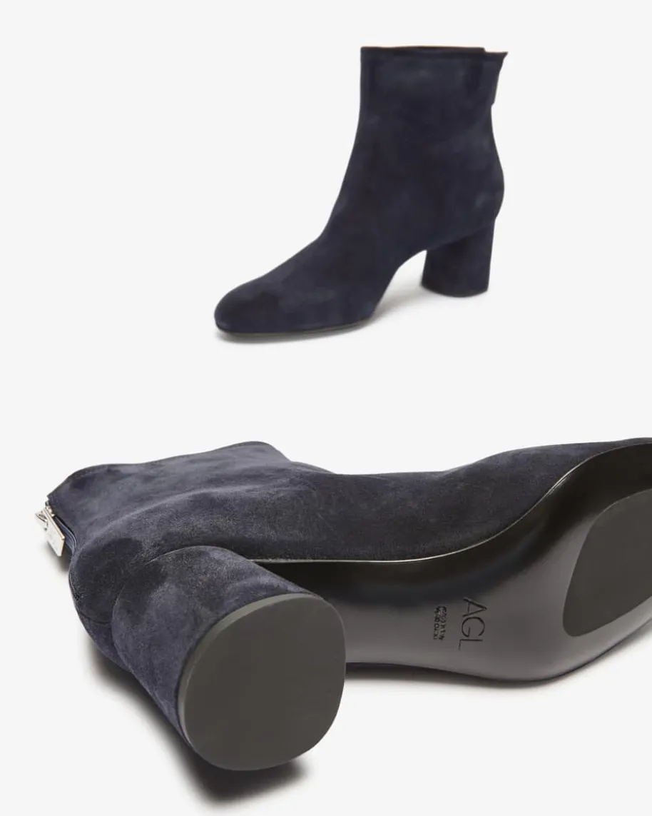 Olga Stiefelette für Damen von AGL in Navy. Während die hochwertigeVeloursleder-Qualität elegante Akzente setzt, avanciert dieses Modell dankklassischem Design zum zeitlosen Begleiter in der Übergangszeit.