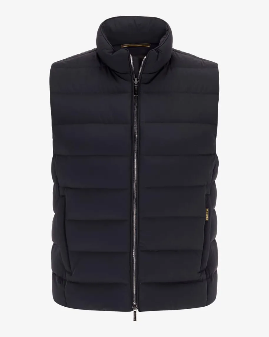 Oliver Daunenweste für Herren von Moorer in Navy. Das gesteppte Modell sorgtdank der hochwertigen Daunen-Feder-Füllung für optimalen und wärmendenTragekomfort, während das cleane Design einen vielseitigen Übergangsbegleiterschaffen.