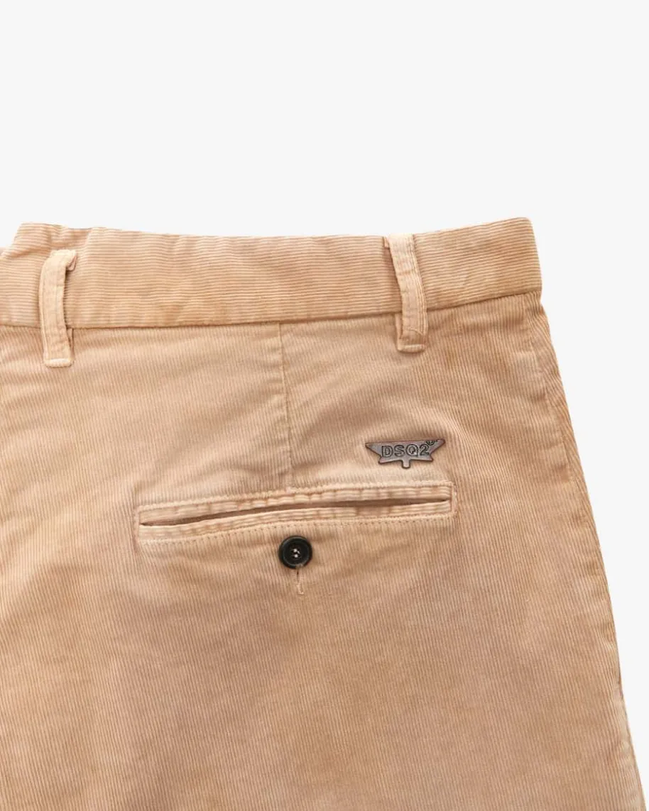 Osaka Cordhose für Herren von Dsquared2 in Sand. Das Modell aus elastischemBaumwoll-Cord präsentiert sich dank der in Falten gelegten Abnähern mitraffiniertem Twist, während klassische Details sowie der gerade Schnitt einenmodischen Casual-Liebling kreieren.