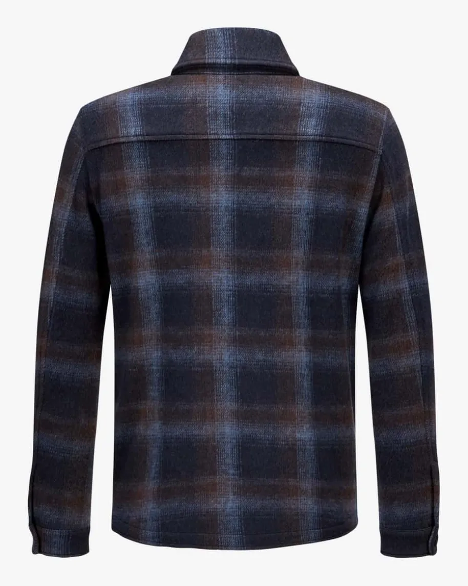 Overshirt für Herren von Maurizio Baldassari in Navy, Hellblau und Braun.Während das Modell dank der hochwertigen Schurwoll-Qualität mit angenehmenTragemomenten punktet, kreiert die legere Hemdjacken-Aufmachung in gewebterFlanell-Aufmachung einen modischen Look.