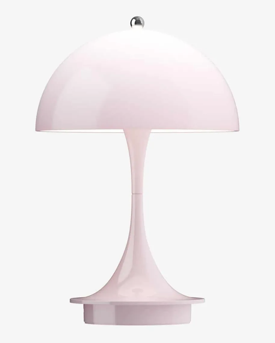 Panthella 160 Portable V3 von Louis Poulsen in Rosa.Entworfen 1971 von Verner Panton, überzeugt die Lampe mitihrer charakteristischen Silhouette und ihrer Fähigkeit,weiches, stimmungsvolles Licht zu spenden. Die integrierteDimm-Funktion und der Akku machen sie zum vielseitigenBegleiter – vom Wohnzimmer bis zur Terrasse.