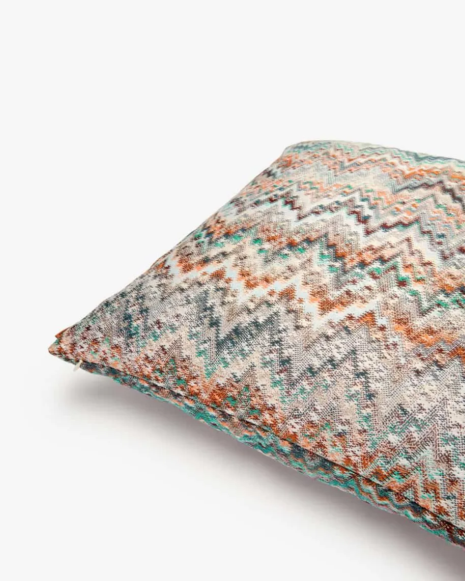 Parrot Kissen von Missoni Home in Türkis, Blau und Braun. Die abgetöntenZickzack-Linien auf dem stilvollen Chevronmotiv spiegeln den lebendigen undfarbenfrohen Charakter des Labels gekonnt wider und lassen das Home-Accessoireso zu einem modischen Blickfang in Ihrem Zuhause avancieren.