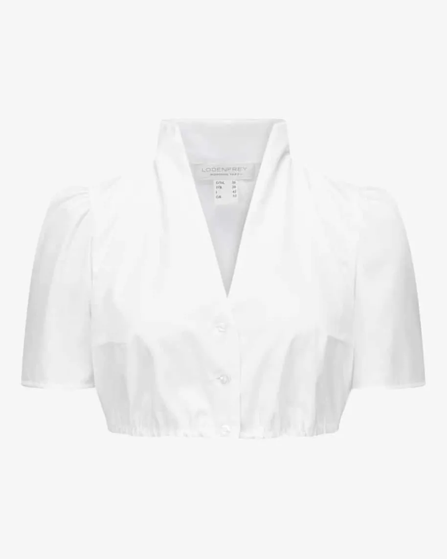 Paula Dirndlbluse für Damen von LODENFREY München 1842 in Weiß. JahrelangeErfahrung, hochwertige Verarbeitung und viel Liebe zum Detail zeichnen dieexklusiven Kreationen aus unserem Hause aus. Dank der angenehmen Baumwoll-Qualität und feinen Paspelierung erhält das Modell einen traditionellenCharakter.