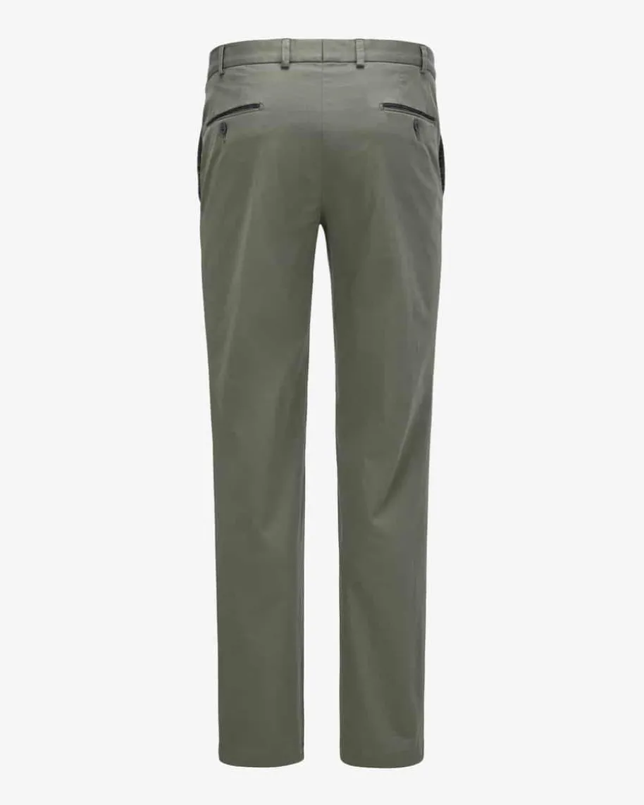Peaker-S Chino Contemporary Fit für Herren von Hiltl in Moosgrün. Das Modell aushandgepflückter US-Baumwolle präsentiert sich in zeitloser Aufmachung. Nebencharakteristischen Merkmalen besticht die Hose dank Hemdstopper auf derInnenseite des Bundes sowie den kontrastierenden Paspeln an den Taschen und derGürtelschlaufe.