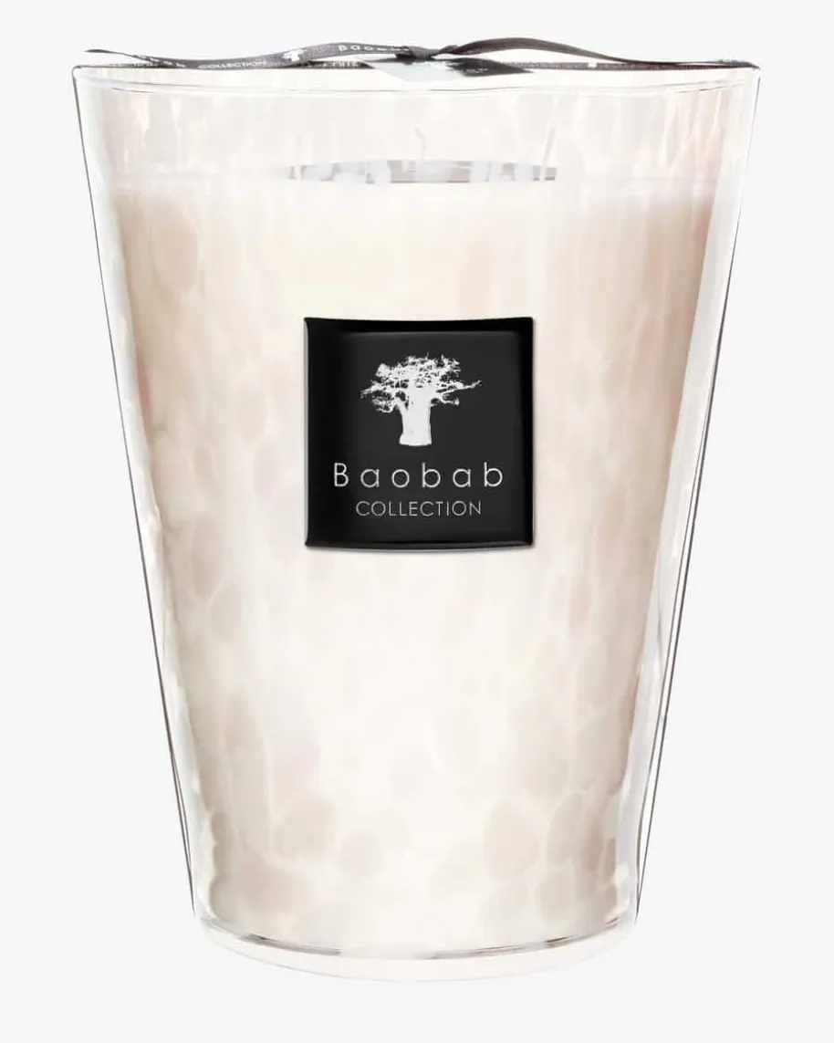 Pearls White Kerze von Baobab in Weiß. Schon seit Jahrhunderten gelten weißePerlen als Symbol für Reinheit und Liebe. Die Kerze White Pearls, die mit einemMuster in zartrosa und weiß verziert ist, erinnert an die Perfektion der Perlen,die auch als „Tränen der Götter“ bekannt sind.