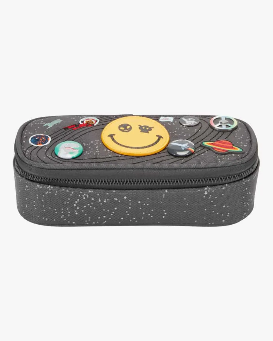 Pencil Box Federmäppchen für Kinder von Jeune Premier in Dunkelgrau und Bunt.Diese Box überzeugt mit kreativen Applikationen, während die Gummibänder zudemfür Ordnung sorgen.