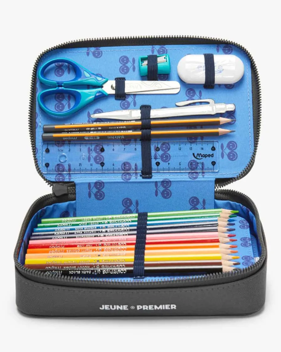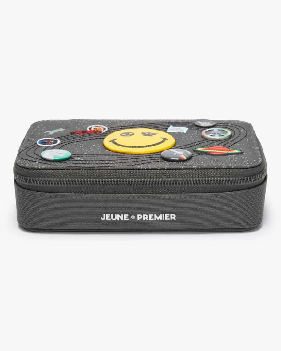 Pencil Box Filled Federmäppchen für Kinder von Jeune Premier in Anthrazit undBunt. Diese lässige Federmäppchen-Box präsentiert sich im coolen Weltraum-Design, während die markante Smiley-Applikation neben dem funktionalen Inhaltein weiteres Highlight setzt.